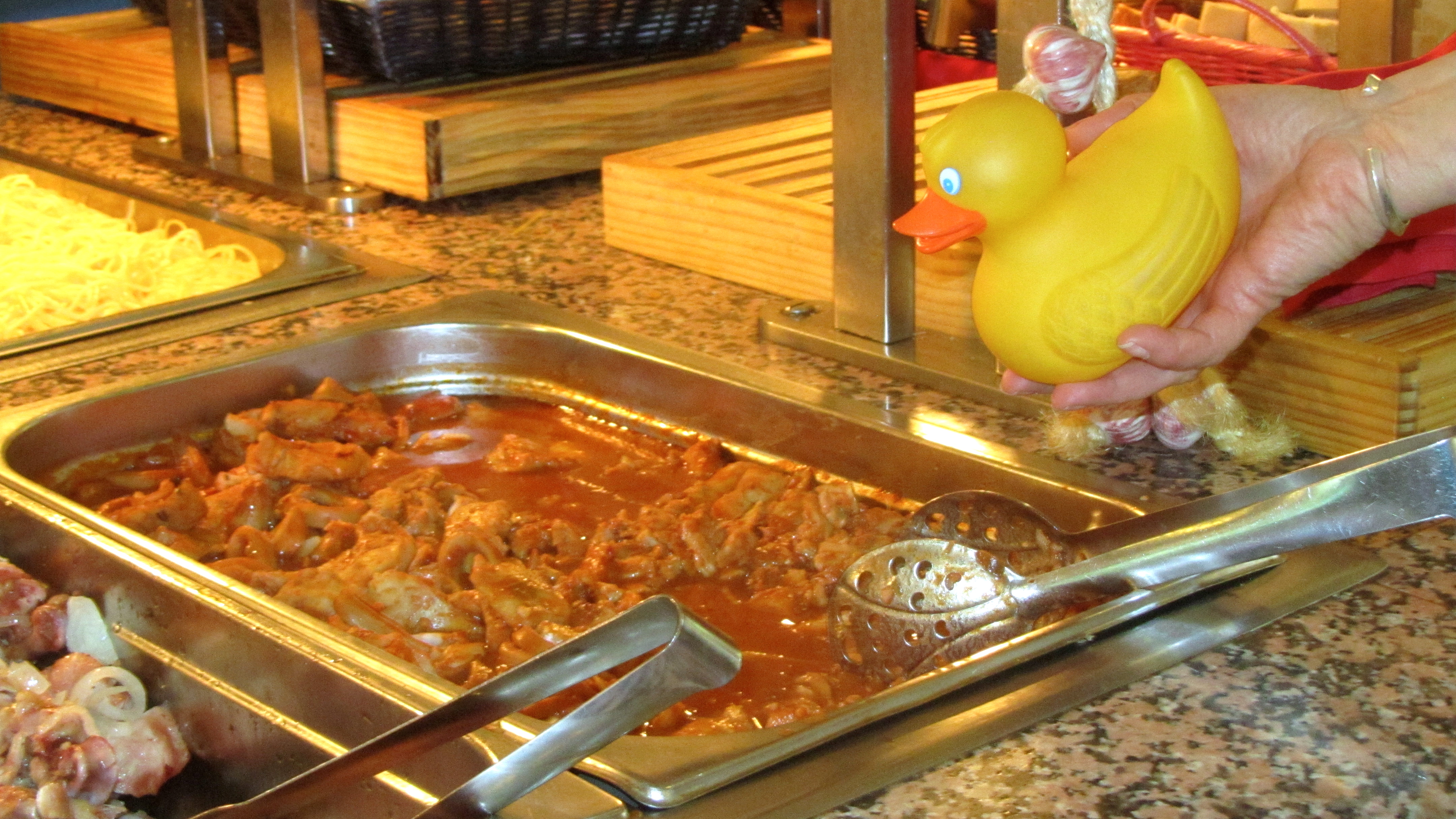 We, humans and Duck, enjoyed a buffet lunch in Santa Clara at Los Caneyes Hotel.
