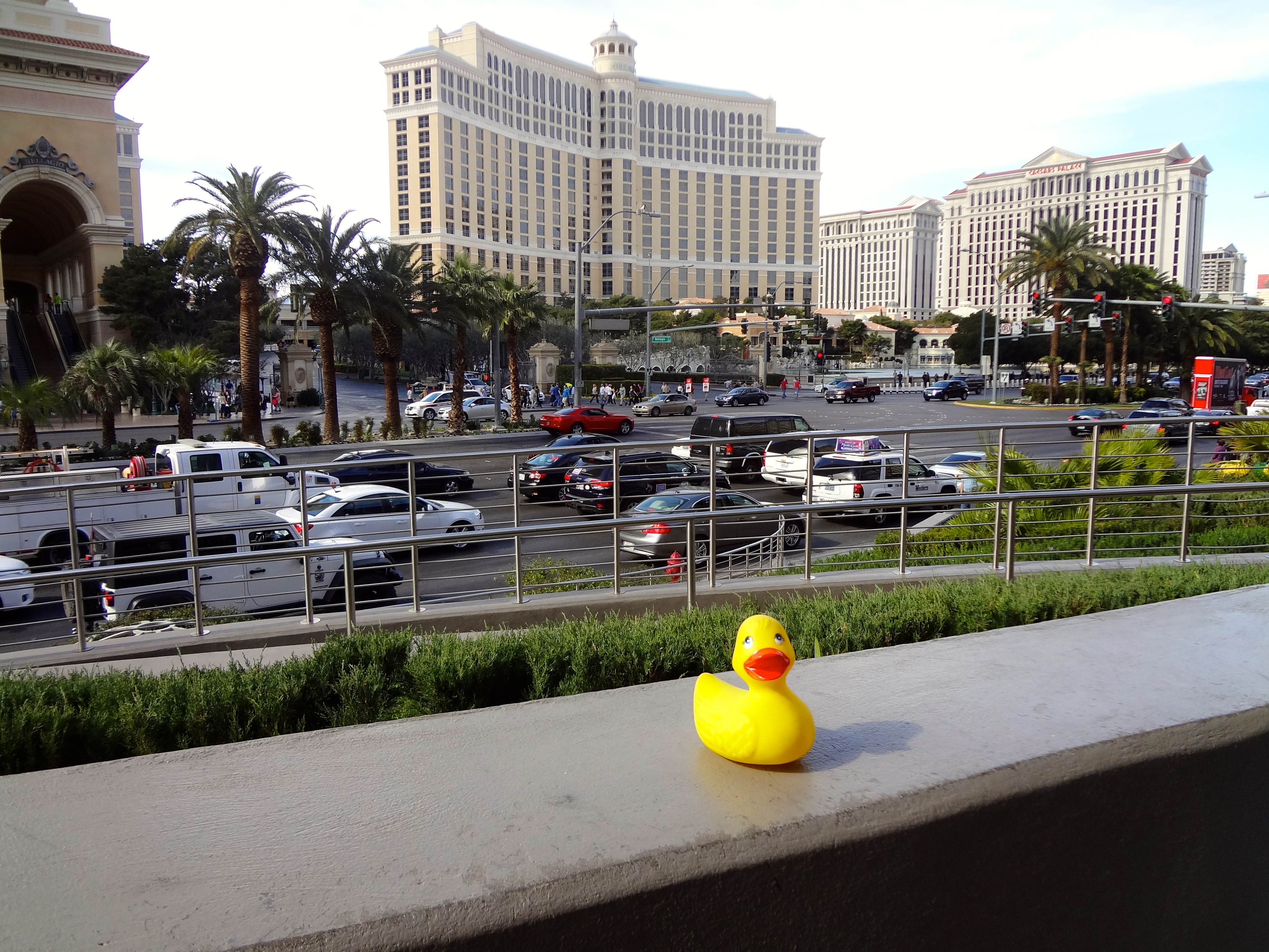 My Alaska cousin, Eider Duck sent us pictures from his trip to Las Vegas. Here is Eider near Plant Hollywood looking toward the Bellagio.