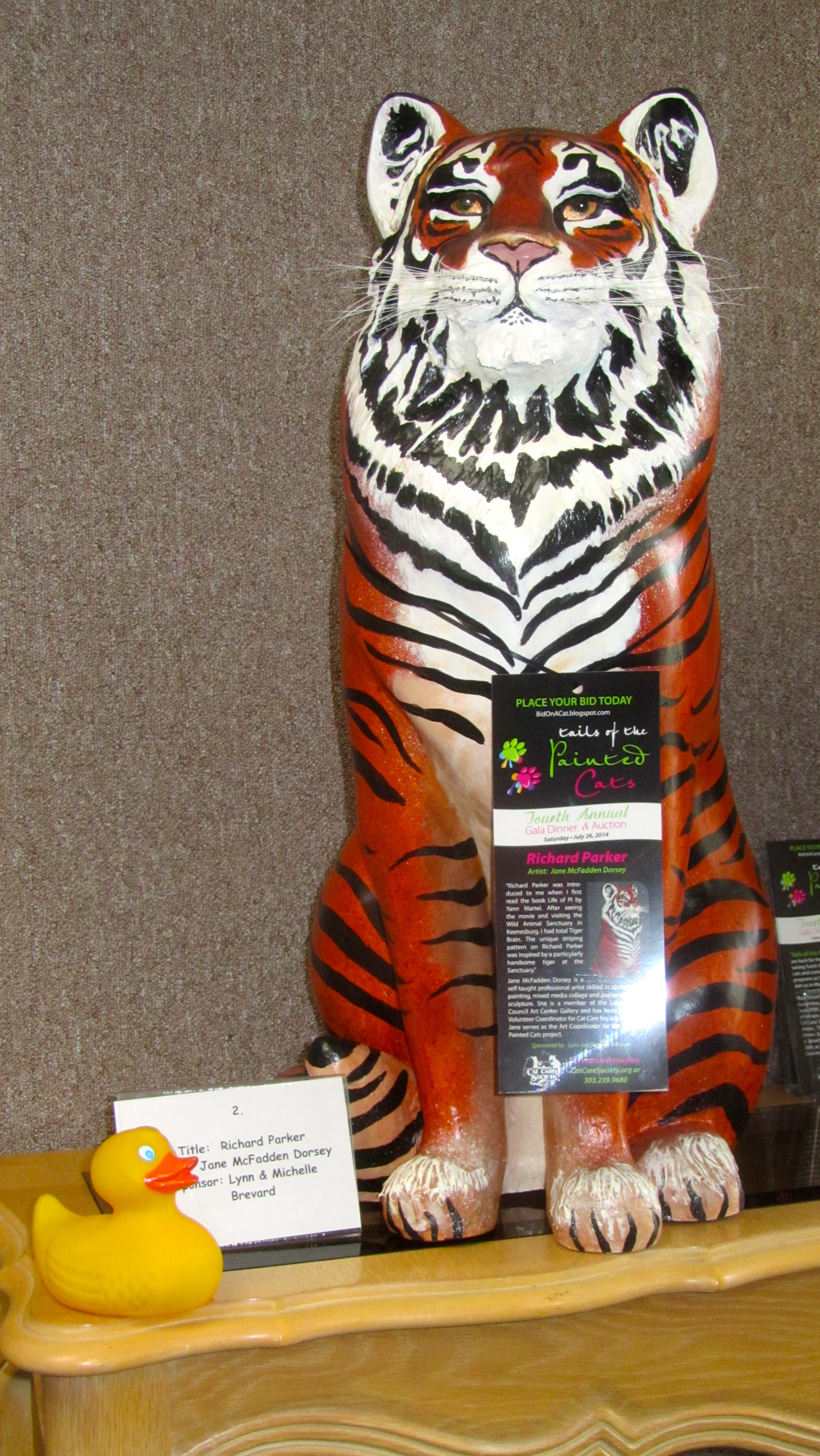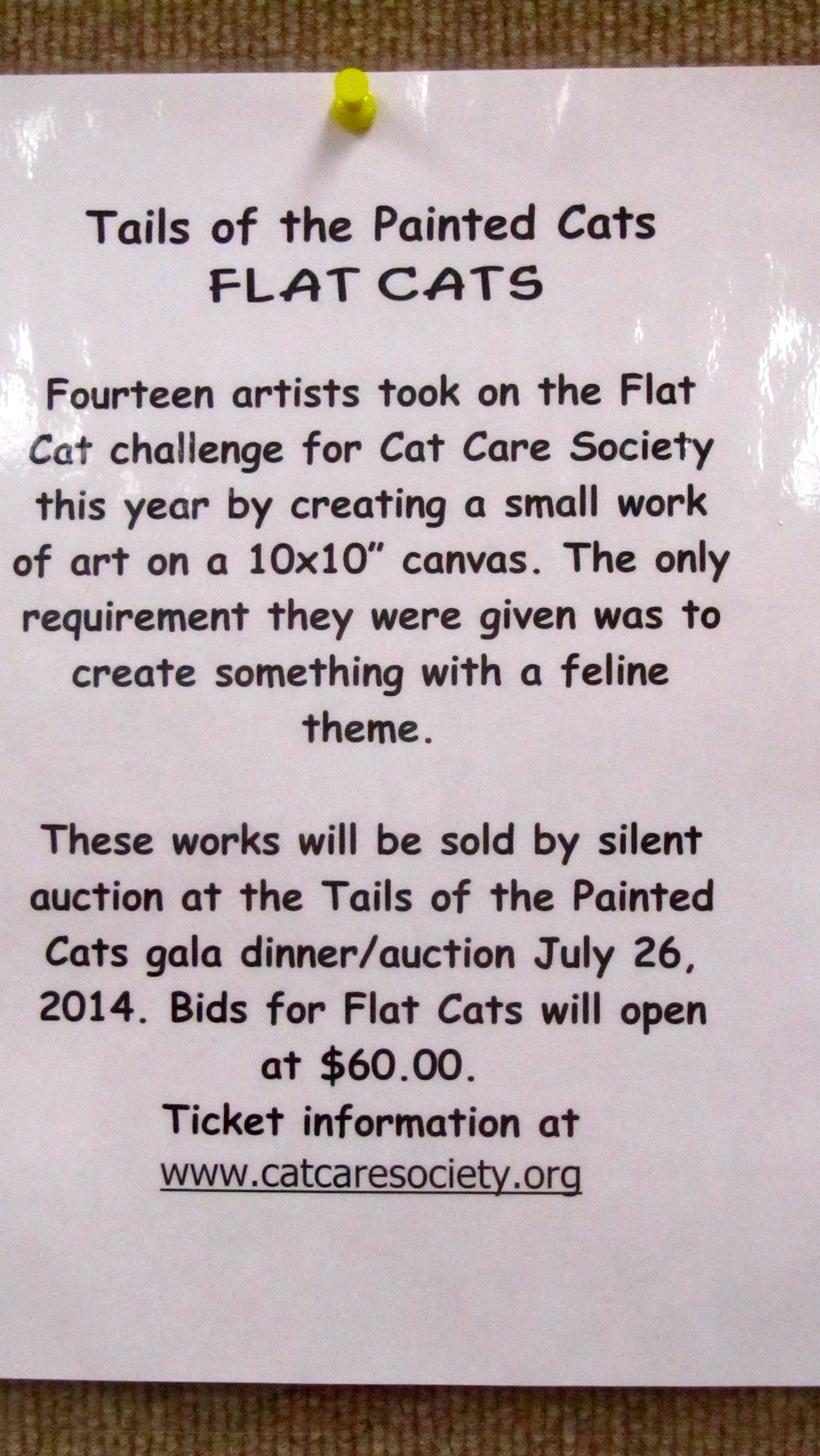 The cat art will be auctioned at Tails of the Painted Cats Gala Dinner and Auction on Saturday, July 26, 2014.  The auction and dinner will be held at Pinehurst Country Club and benefit of the Cat Care Society.