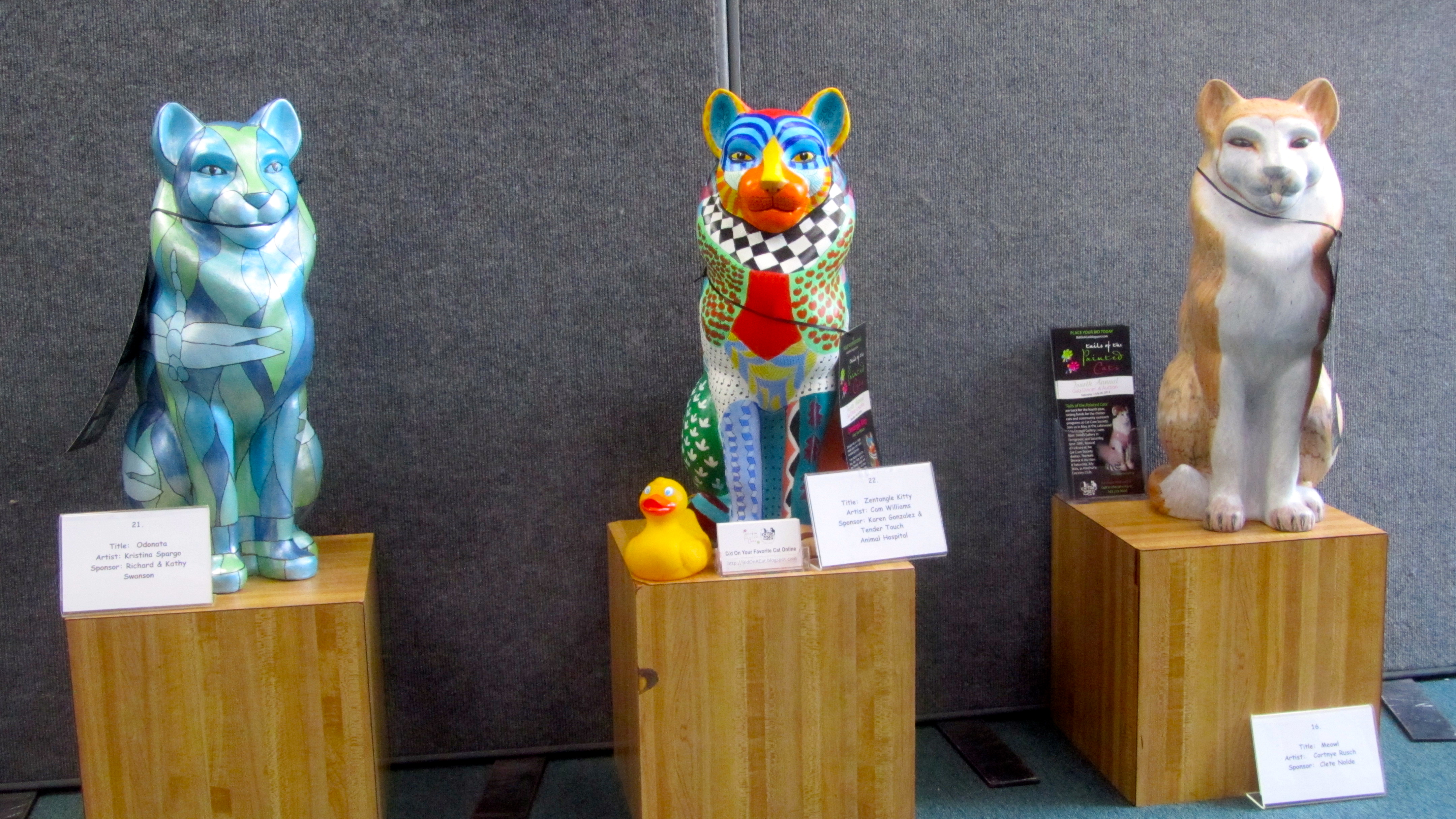 We enjoyed this exhibit at Lakewood Arts Council Gallery at 85 S Union in Lakewood, Colorado.  The cats will be here until May 29.