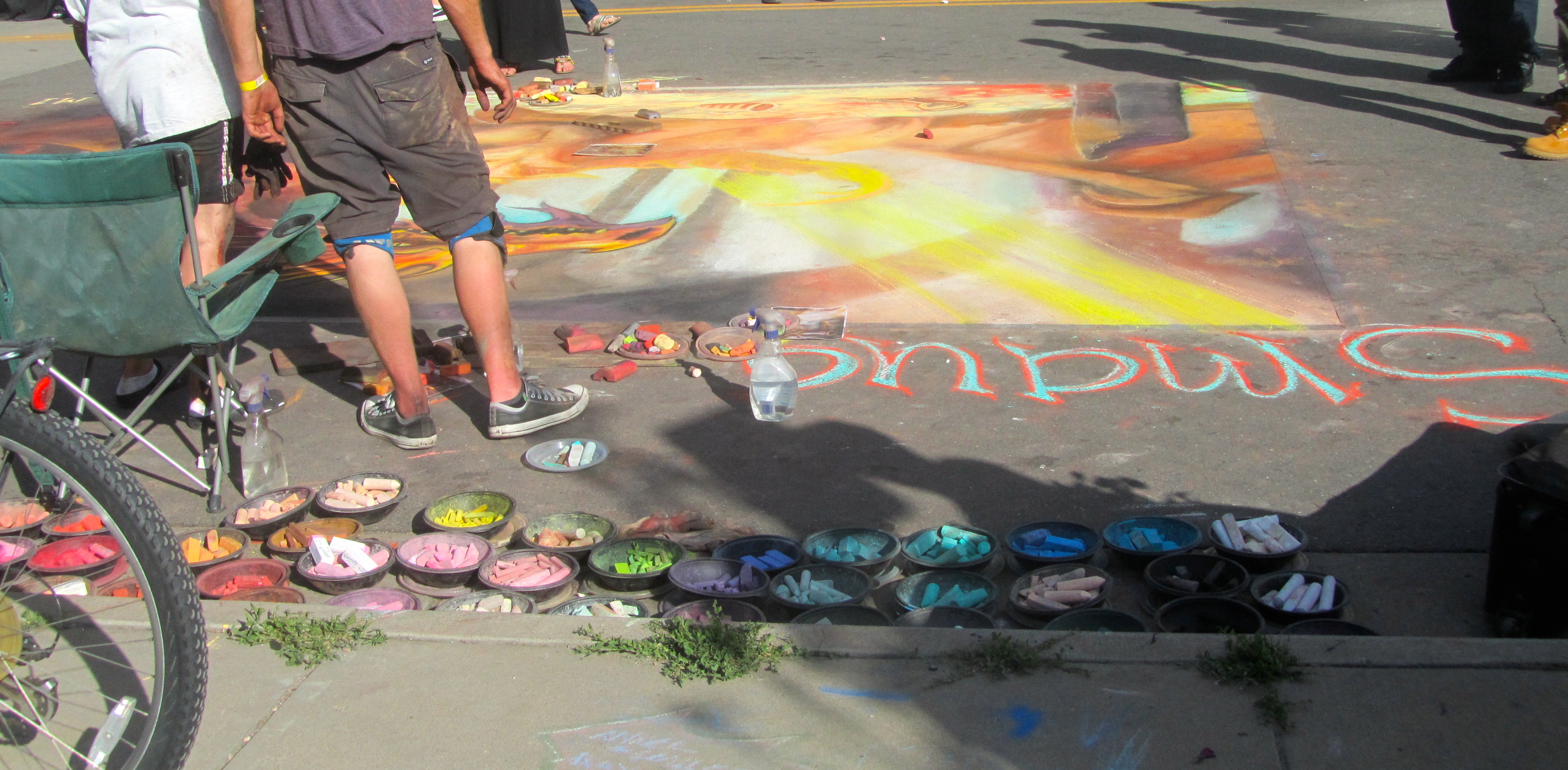 As beautiful as the art is, late Sunday night, a special street sweeper sweeps, or picks up over 175 pounds of chalk and the art is just a memory.