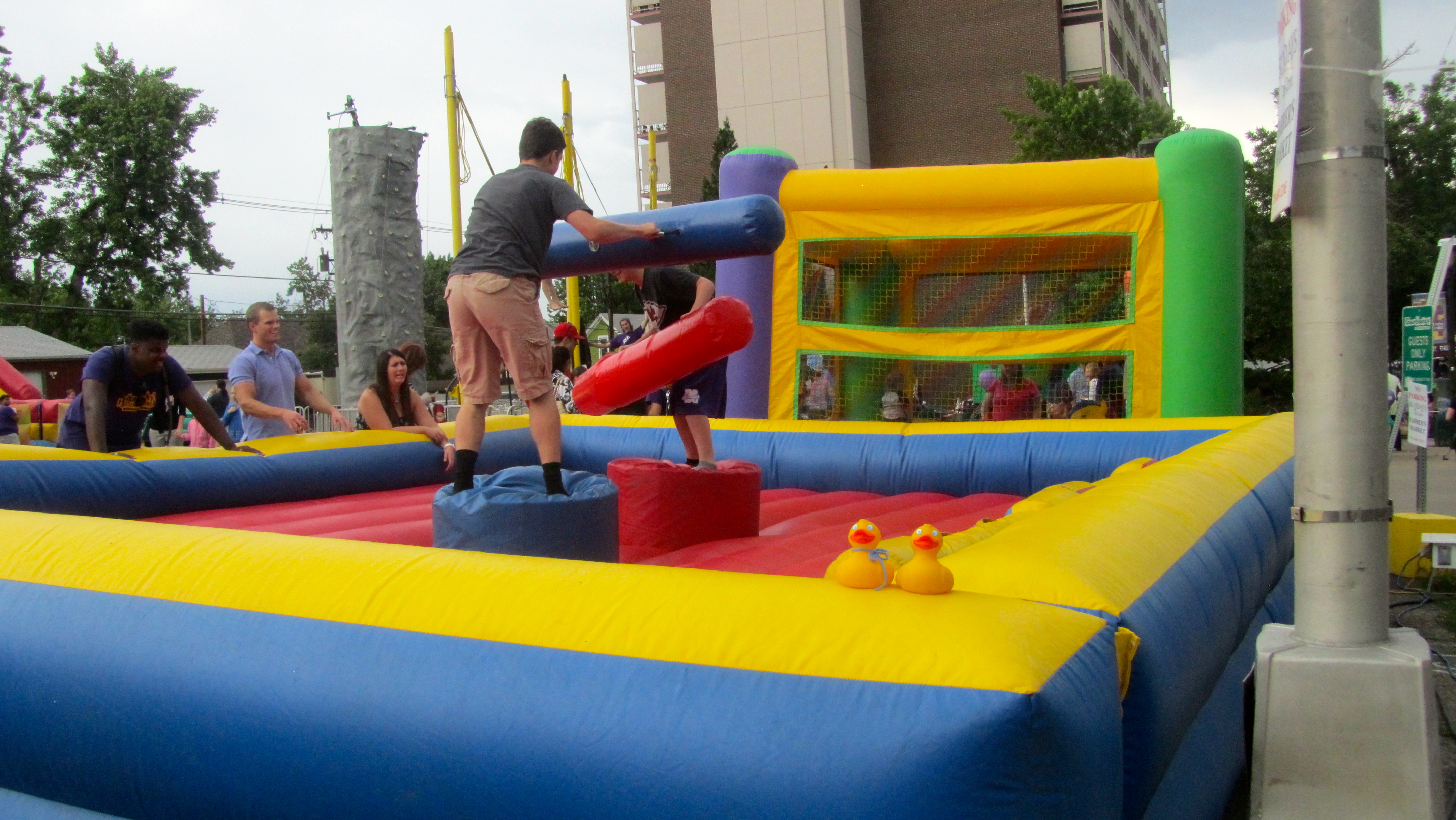 over 150 showing clothing, art and accessories. There was a special section for rides, slides and fun for all ages. Here big kids and adults could safely battle each other.