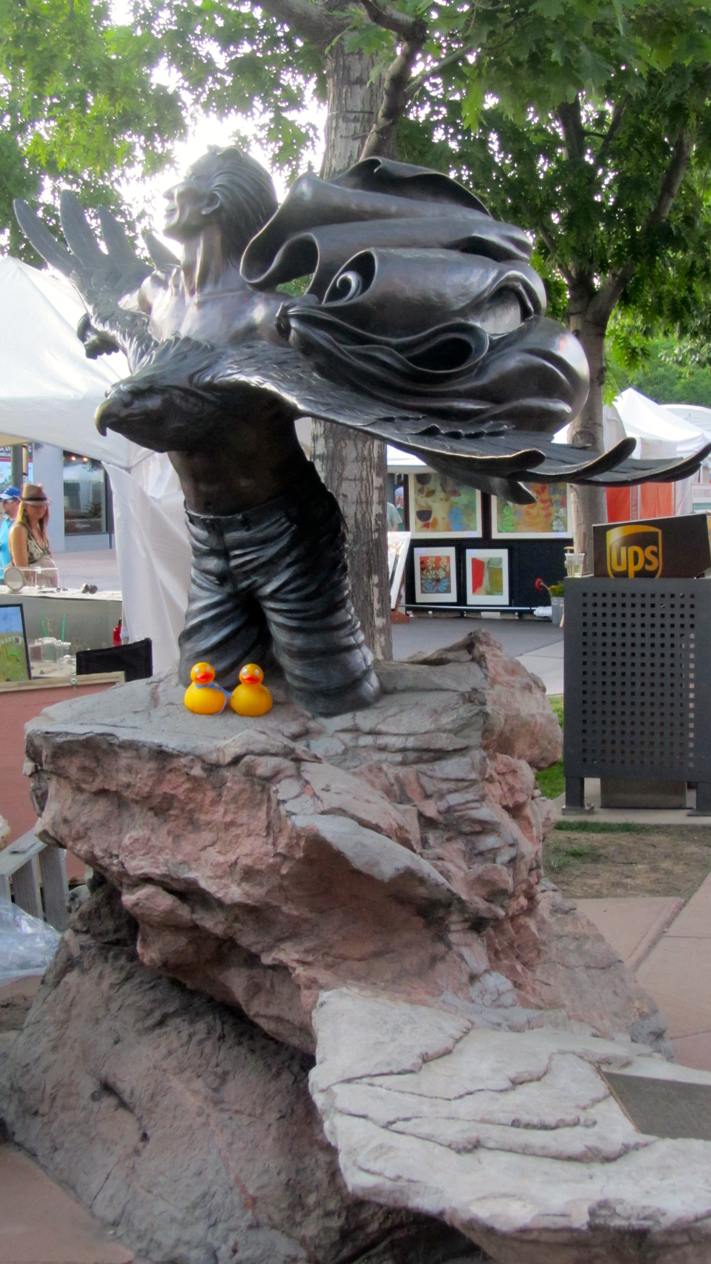 Zeb the Duck here again.  Last Saturday, July 5, Soapy Smith Duck and I went with our moms to the Cherry Creek Arts Festival in Denver.  There was so much to see.  This festival has been an annual event since 1991 and features visual, culinary and performing arts.