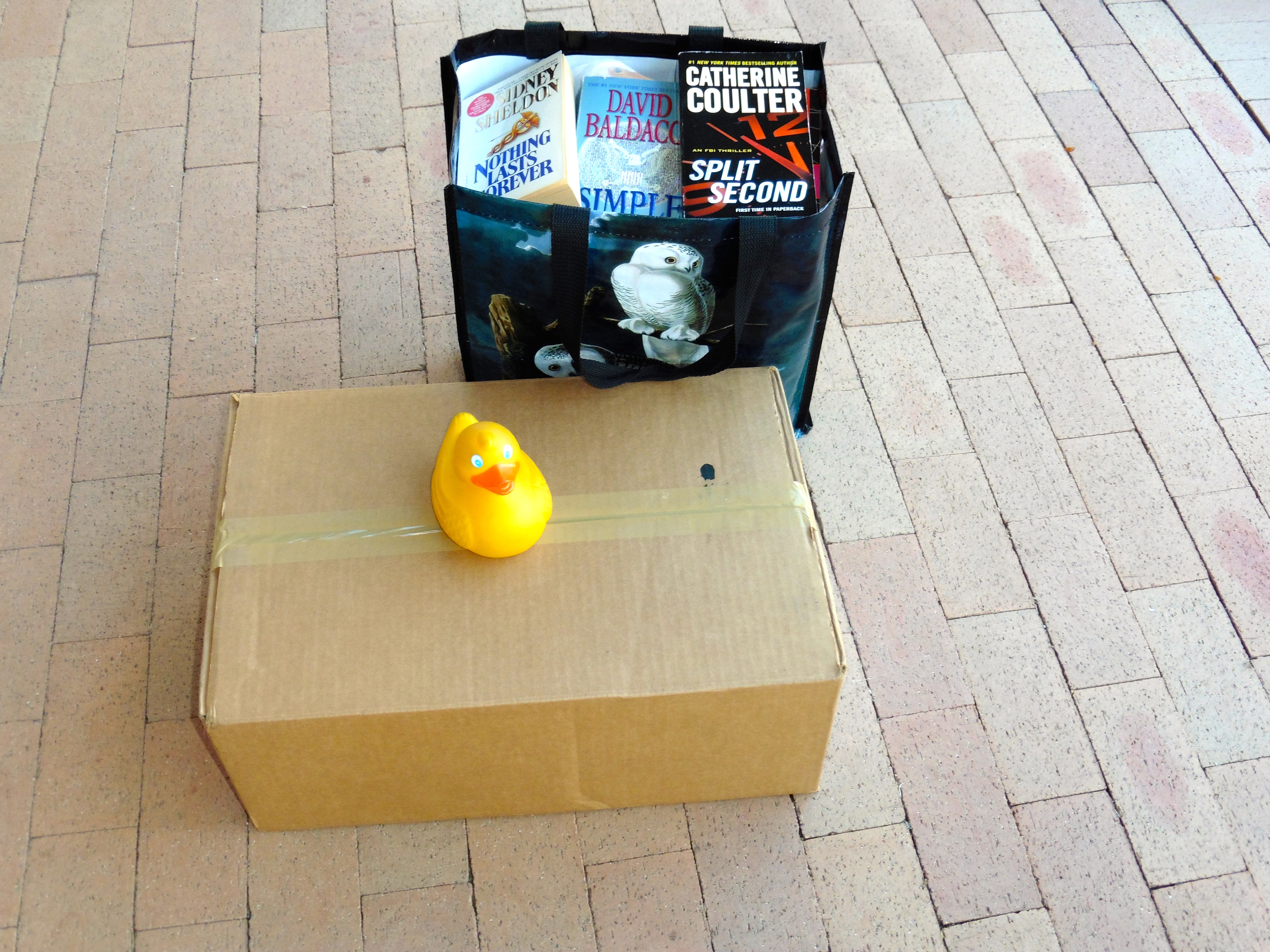 I, Zeb the Duck, went to my first used book sale.  Our county library has a huge used book sale twice a year.