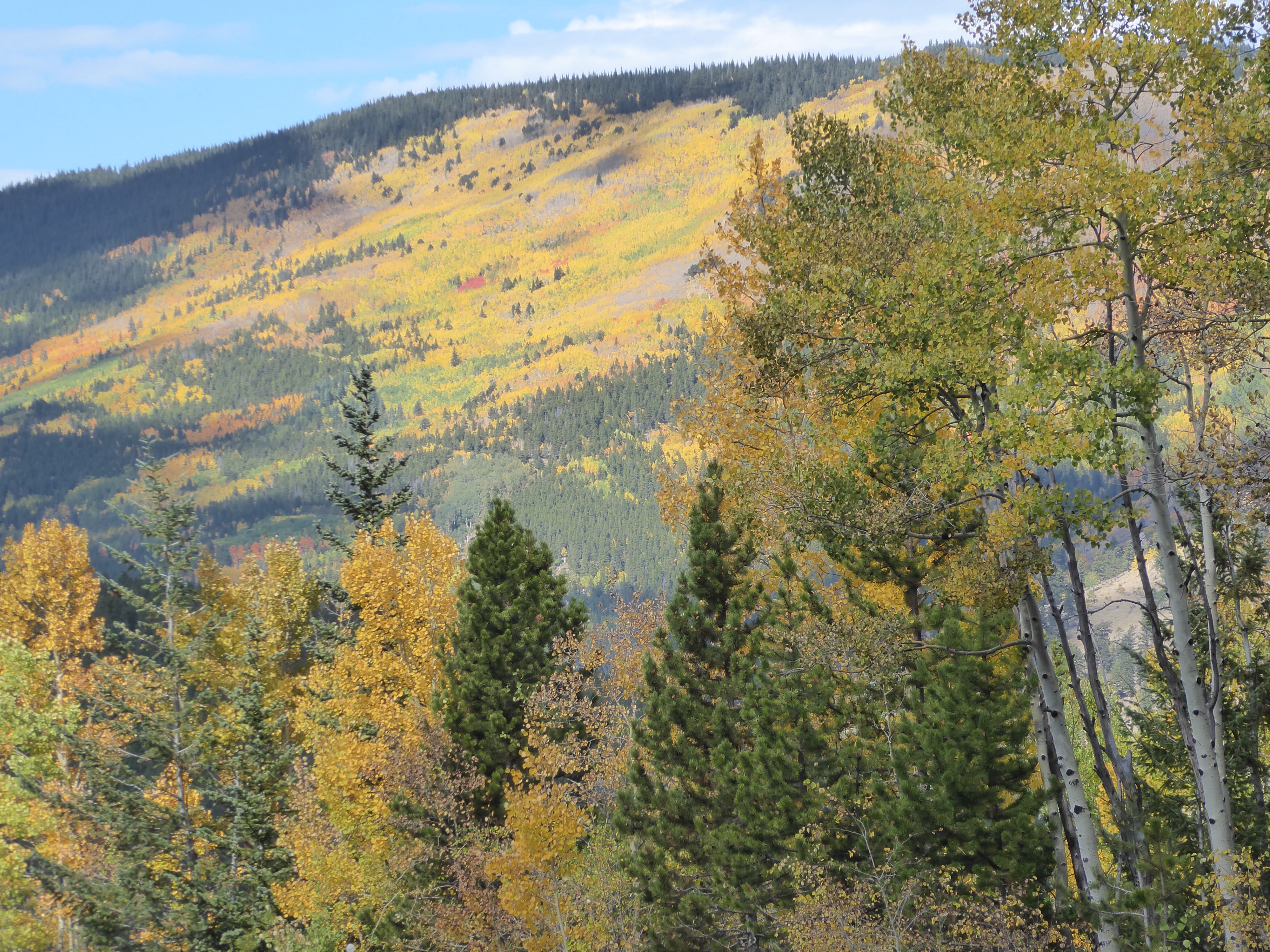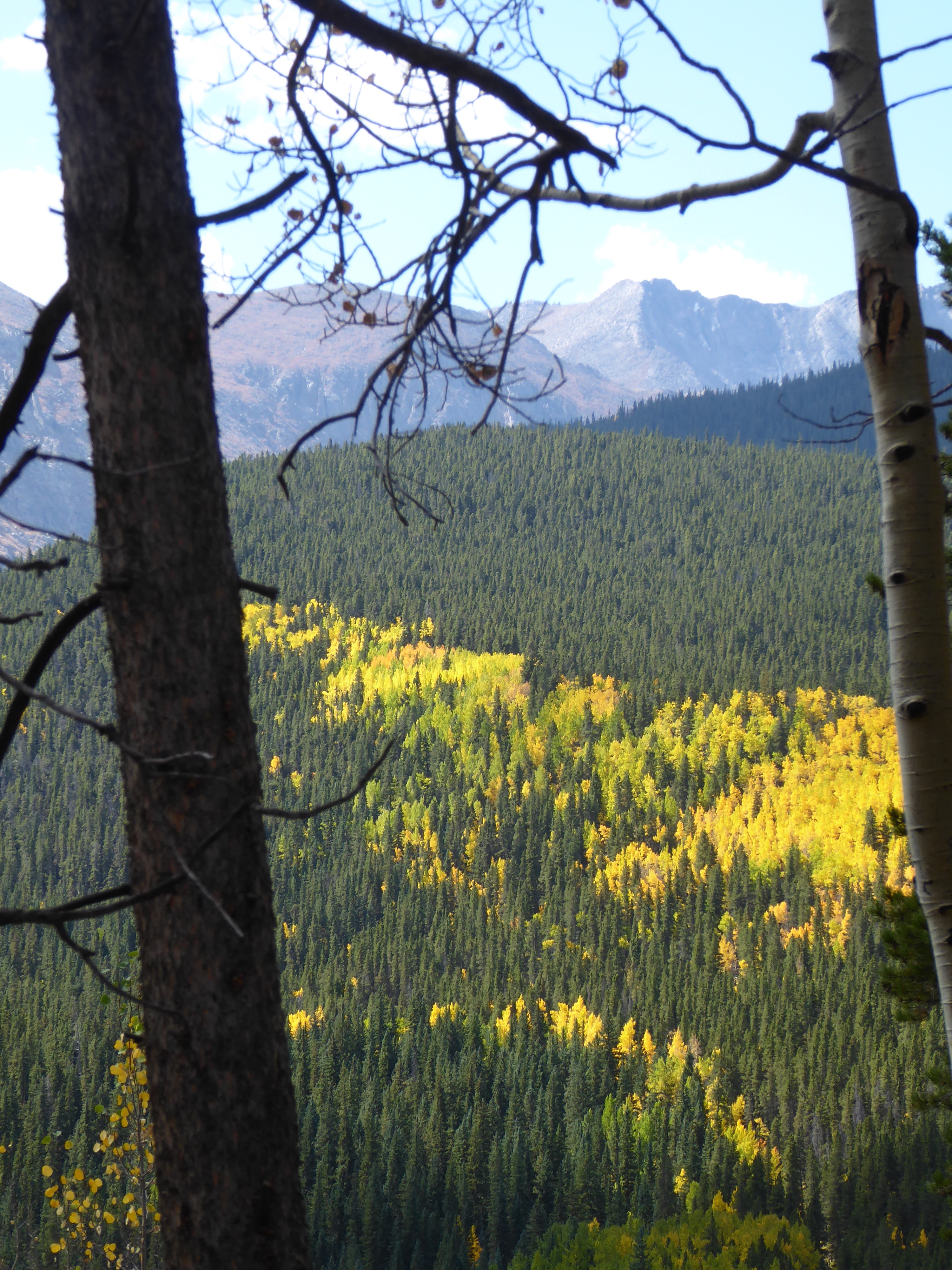Beautiful, isn’t it? Looking through the trees, we saw the golden aspen leaves and the majestic Rocky Mountains.