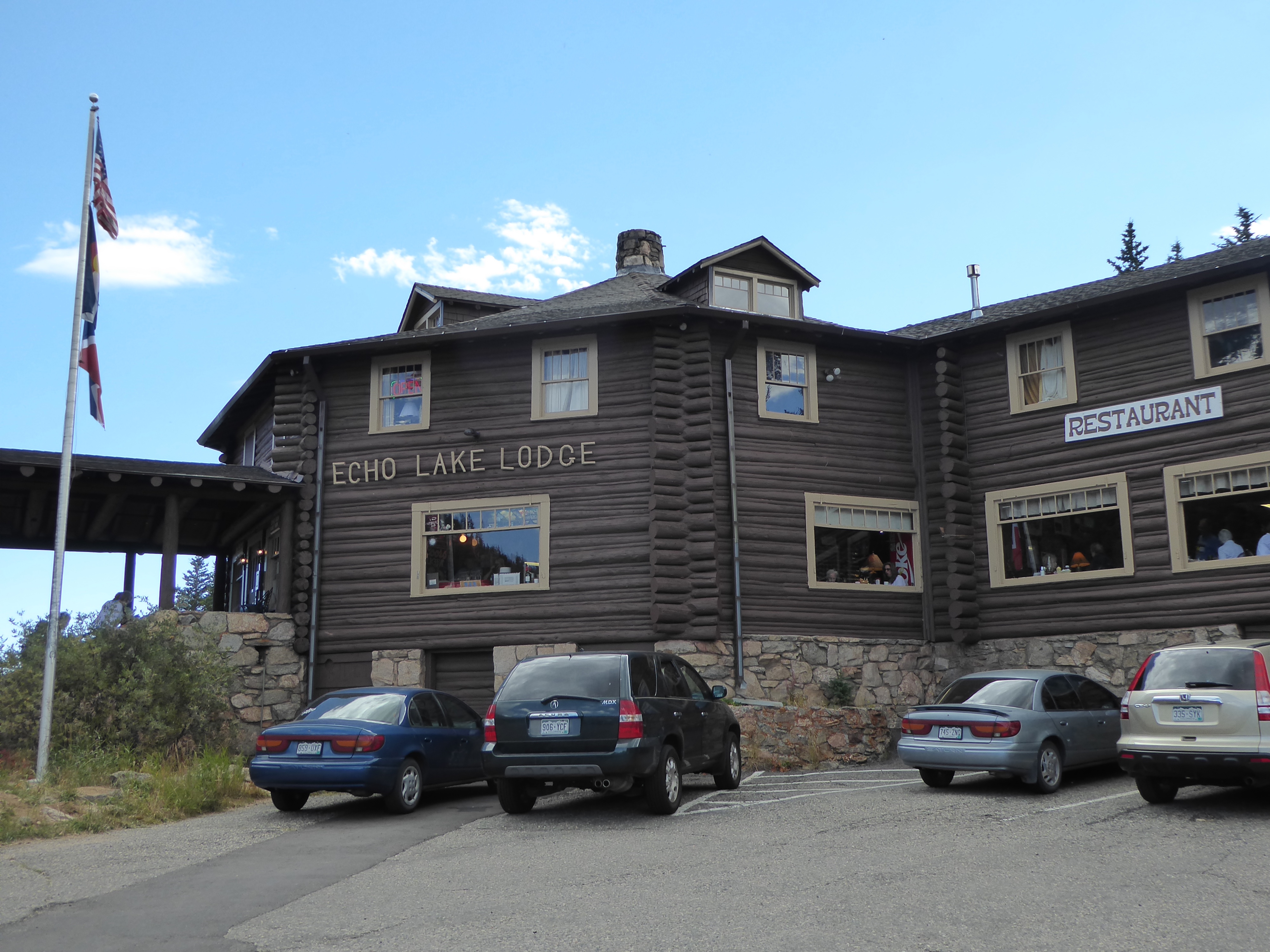 We loved the reflections on the water. The gold aspens and the fluffy white clouds reflected on the lake made us smile. It also made us hungry. The restaurant in the Echo Lake Lodge provided us with a very tasty lunch.