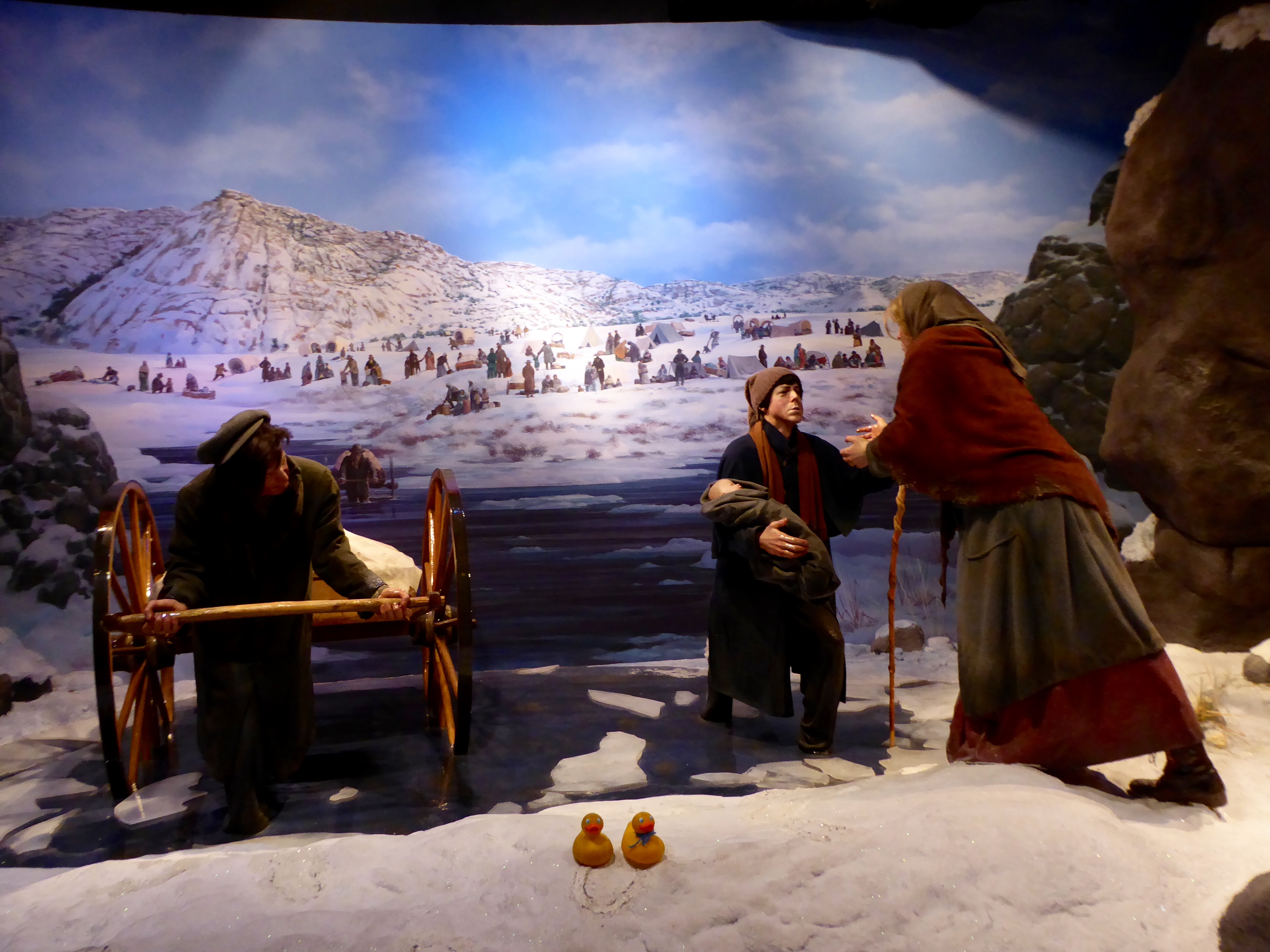 We enter The Archway, purchase tickets, receive our included audio program, and ride the long escalator and we are among covered wagons heading west.