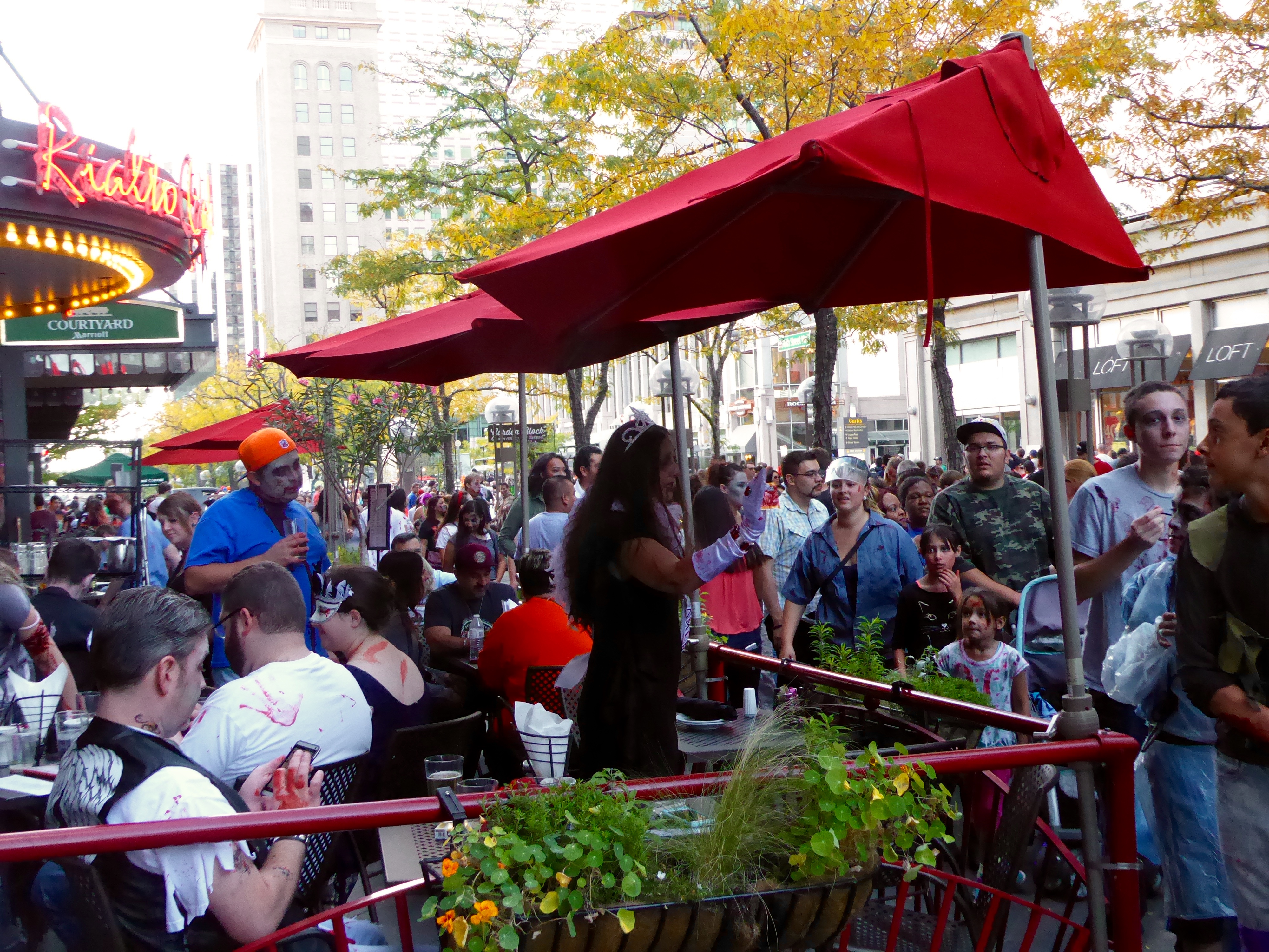 Unlike other festivals, the Zombie Crawl does not have food booths.   Denver’s 16 Street Mall is a great place with many wonderful restaurants.