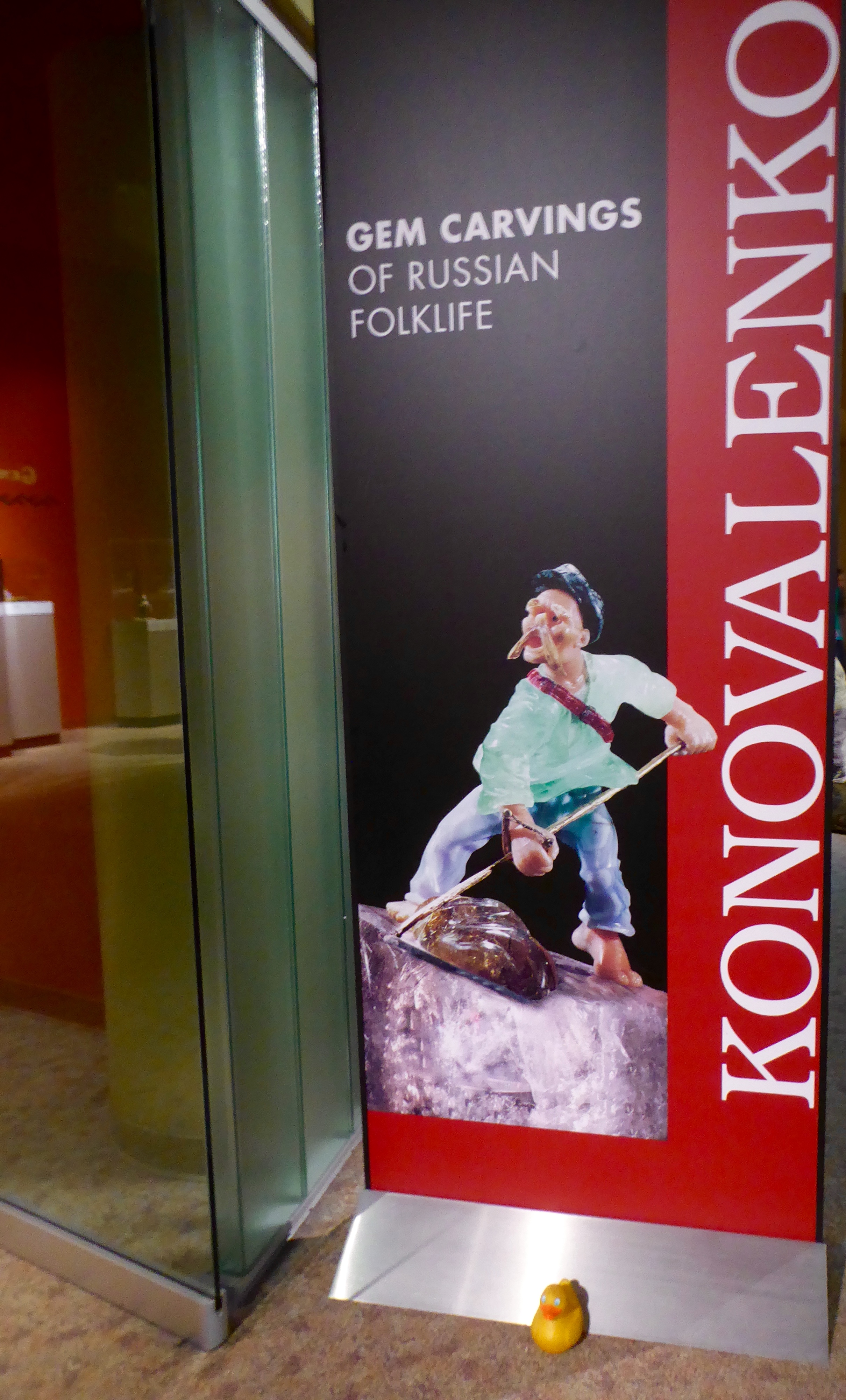 Only to be seen in Moscow, Russian and in Denver, Colorado.   I, Zeb the Duck, saw gem carvings of Russian Folk Life.   According to the Denver Museum of Nature and Science, I am enjoying the only public display of gem carvings by Vasily Konovalenko outside of Moscow, Russia.