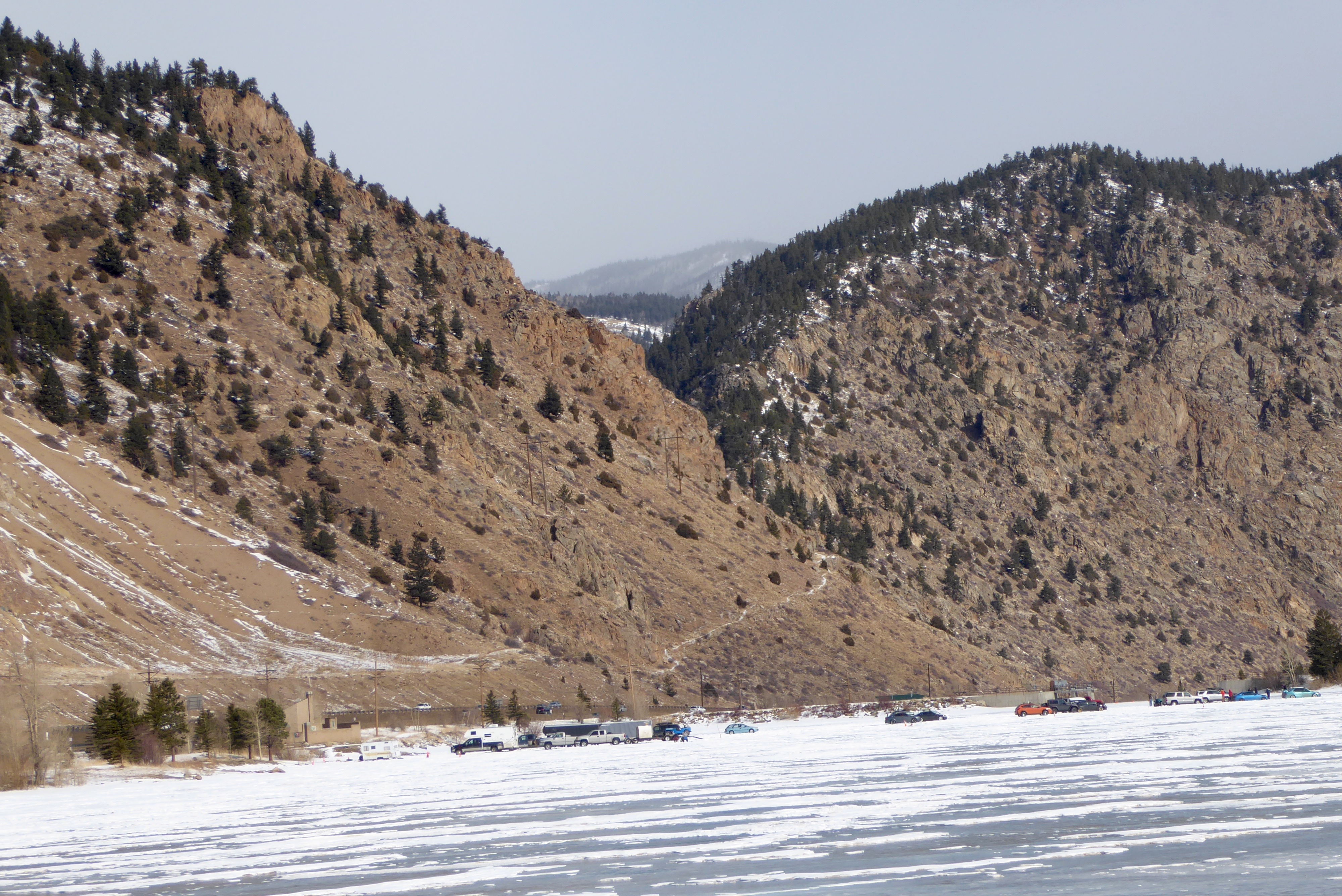 1. Thanks for reading snd commenting. I am not sure about the thickness of the ice. Colorado state guidelines recommend 12-15 inches thick for a medium size pick up truck. Since ice racing happens most weekends every year, I am guessing ice is thick. Perhaps close to 18-24 inches, over one half meter. There was also a tow truck on site, should anything bad happen.