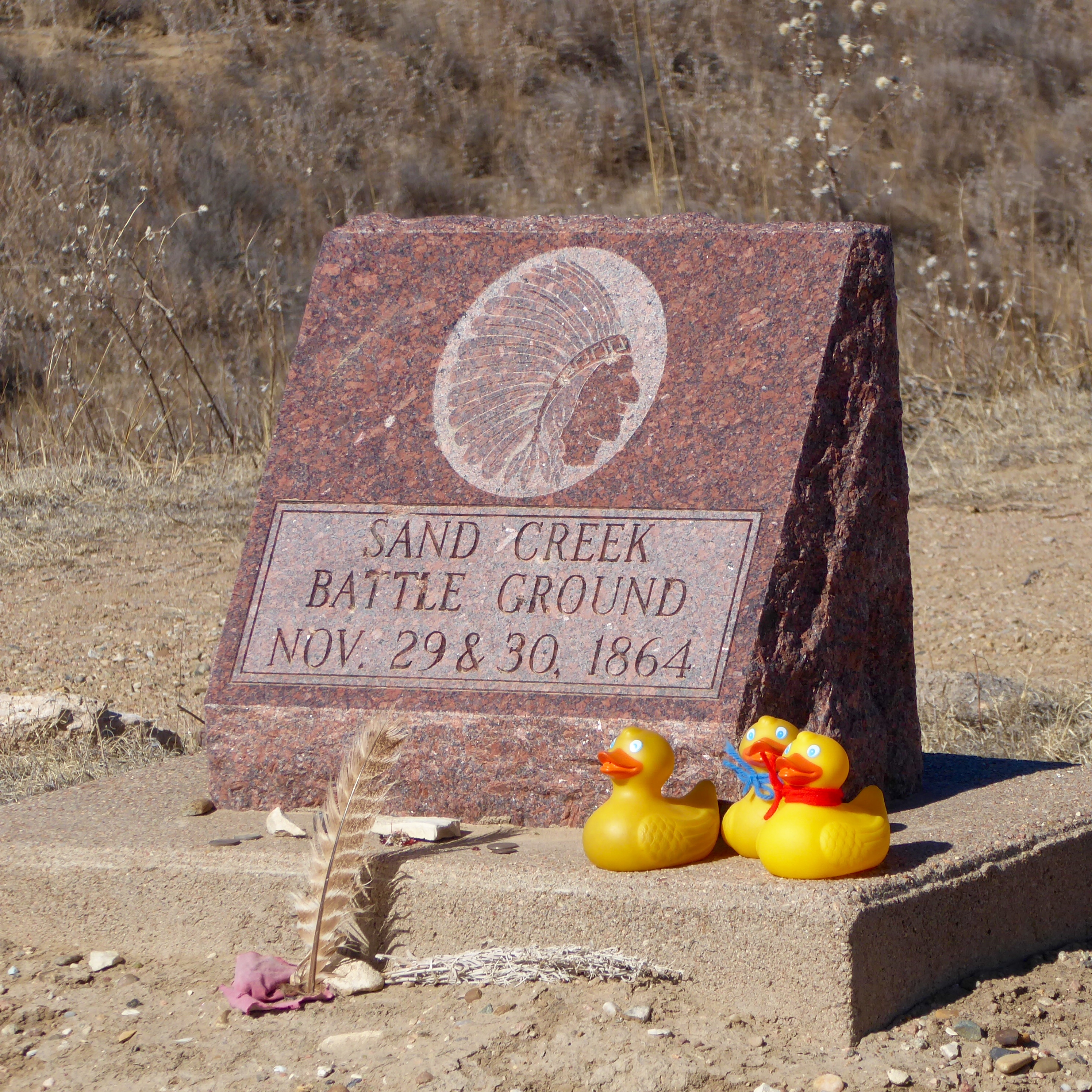 Turn on Hwy 287 to Lamar and visit Big Timbers Museum. A photographer, Chuck, spent several years on the battlefield with a geiger counter recovering many metal artifacts. Here you can see and learn about the cannon balls that were shot, see the small timing devices used and see metal utensils and more. We, the Colorado Traveling Ducks, hope you discover some of the historic remains of southeast Colorado.