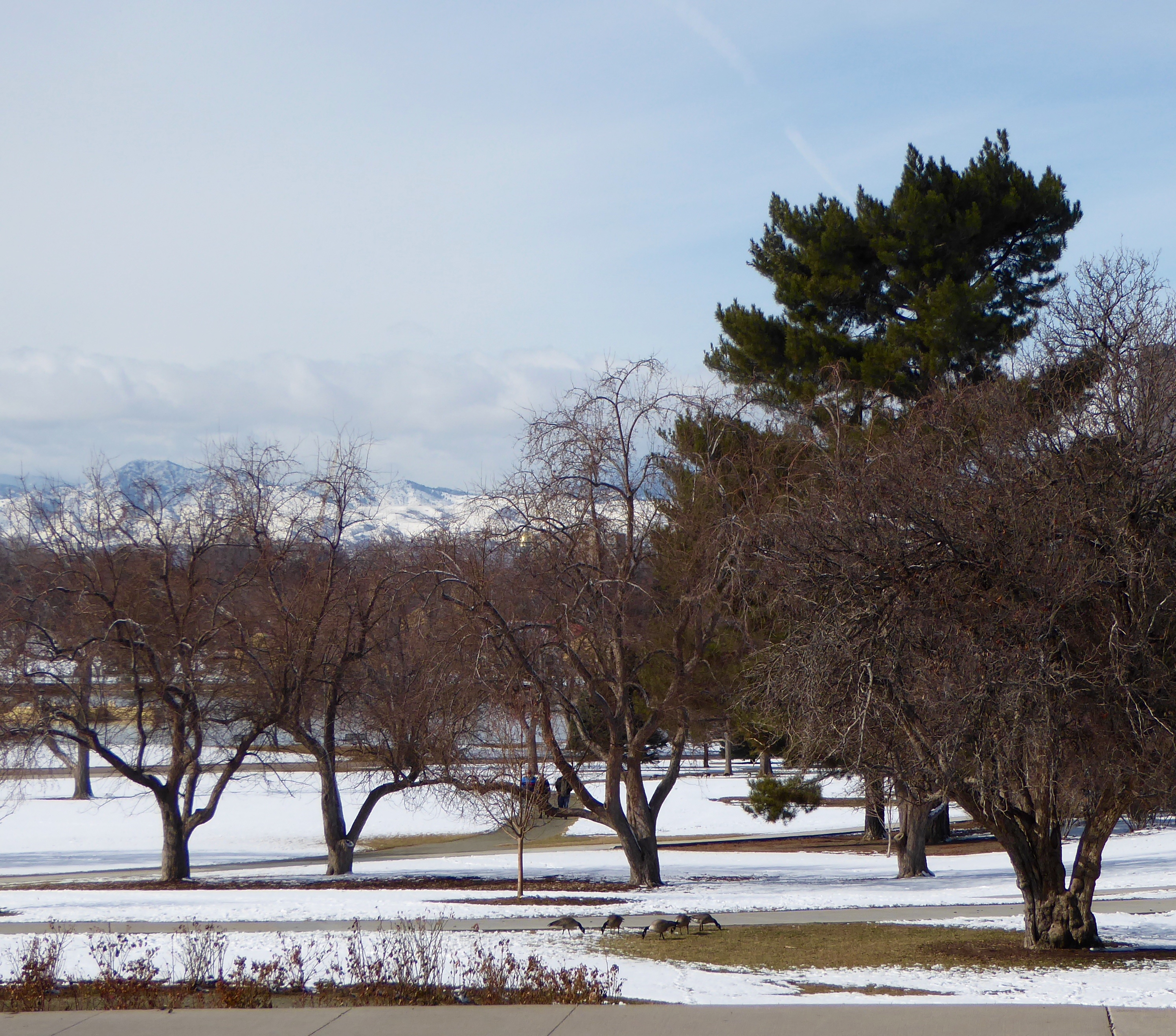 The sun appeared and snow disappeared. The mountains, covered with new snow, from across Denver’s City Park are usually a regular Denver winter sight.