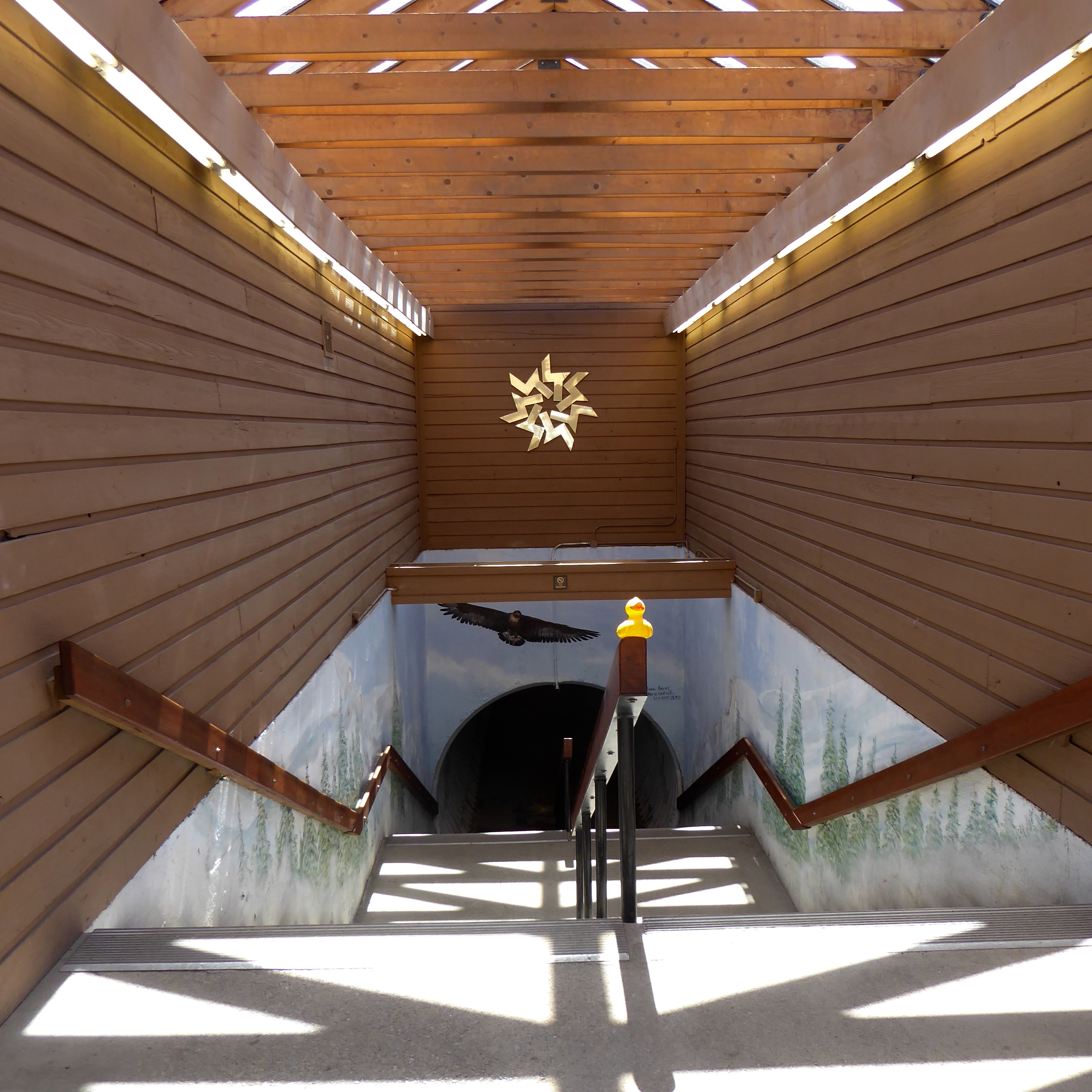 I like this tunnel.   It is cheery and bright.   Up the stairs at the end of the tunnel, we entered Keystone Lodge.