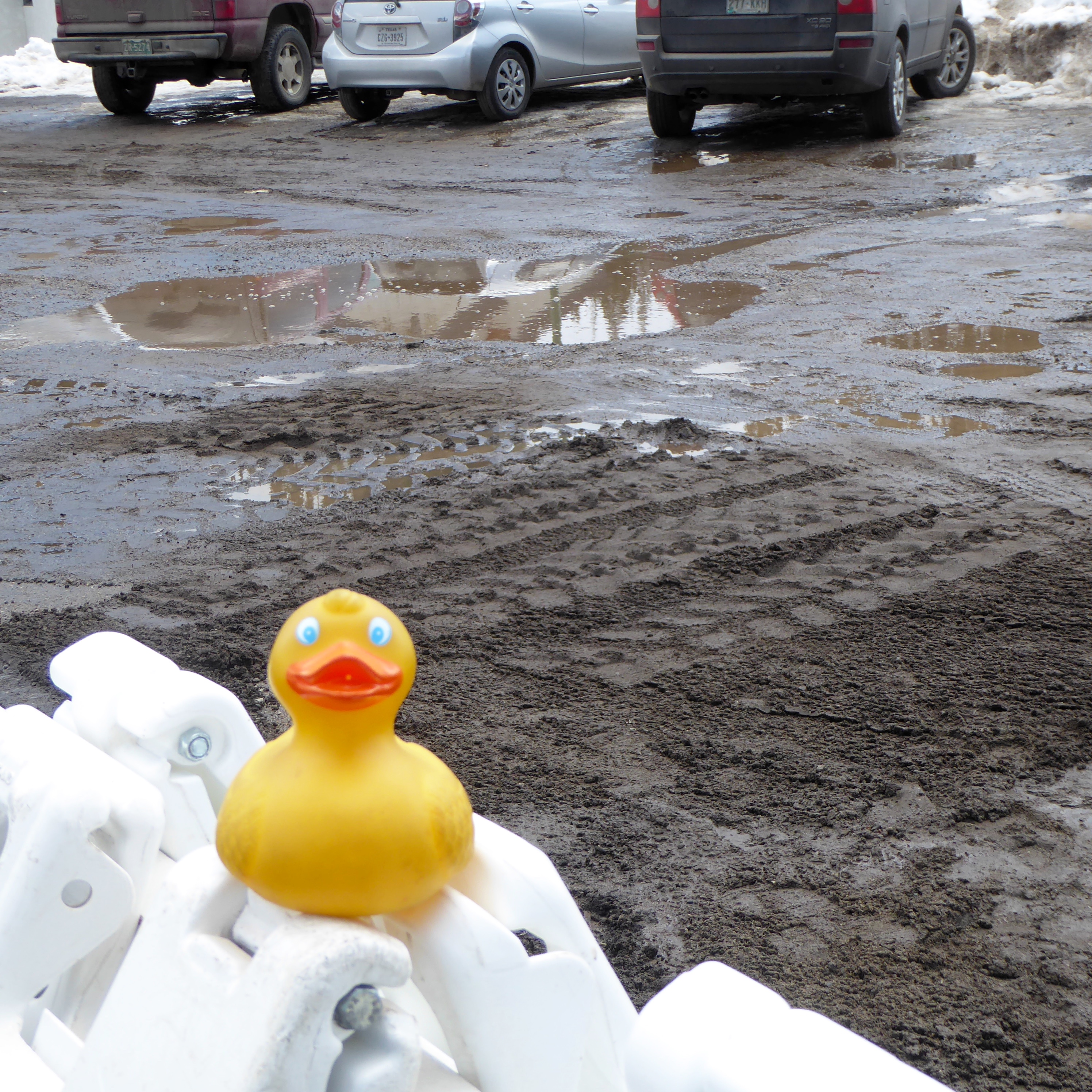 Mud season.   The spring sun is so intense things melt during the day, and at over 9,000 feet elevation, everything freezes at night.     We went to this ski lift.