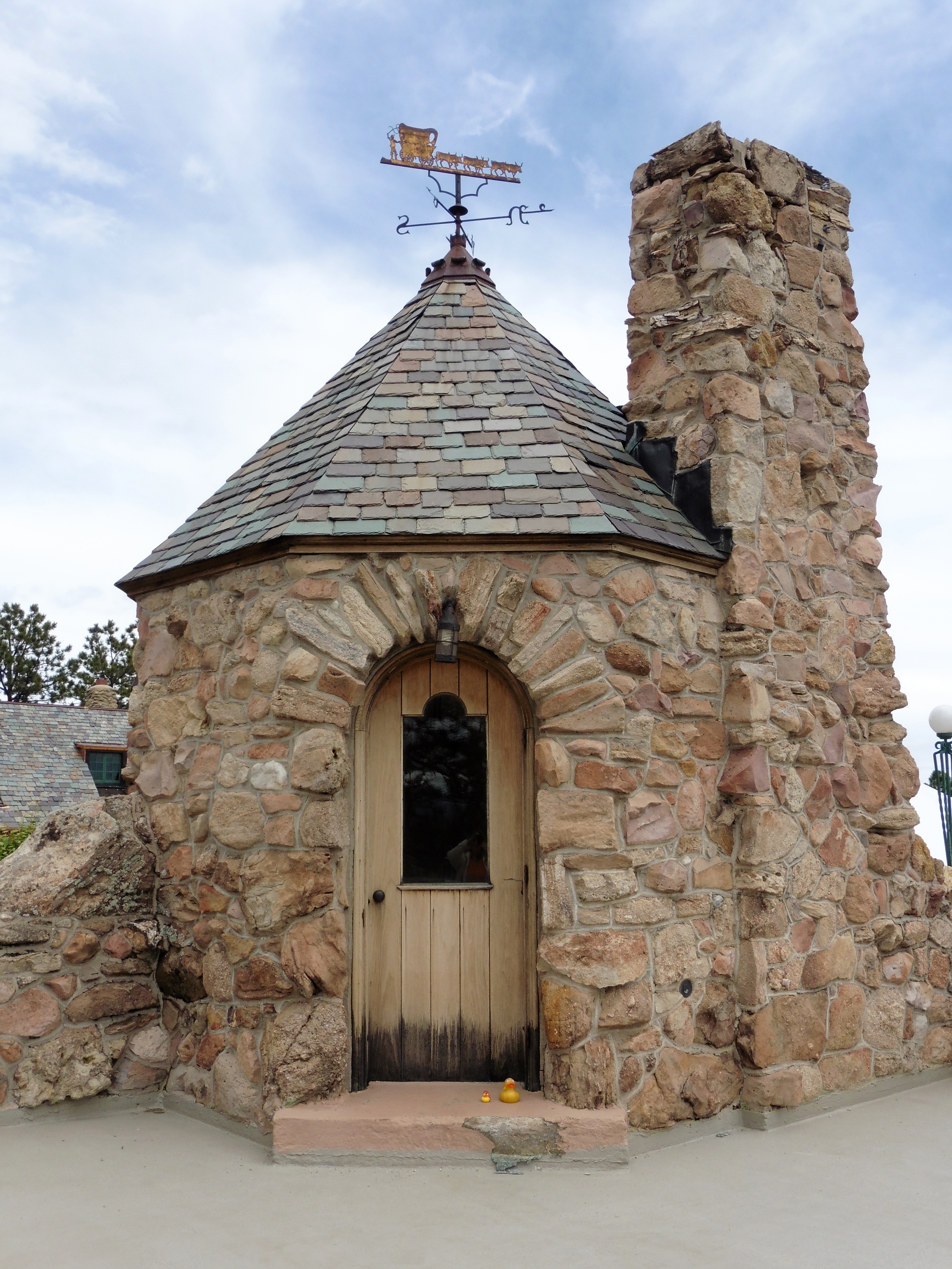 She and her Santa Gertrudis cattle received first place at Denver’s National Western Stock Show for many years.   There is so much to see here, you must visit and tour Cherokee Castle when you are in the Denver area.   Now we are going to the expansive balcony.   This man is balancing on a tight rope.