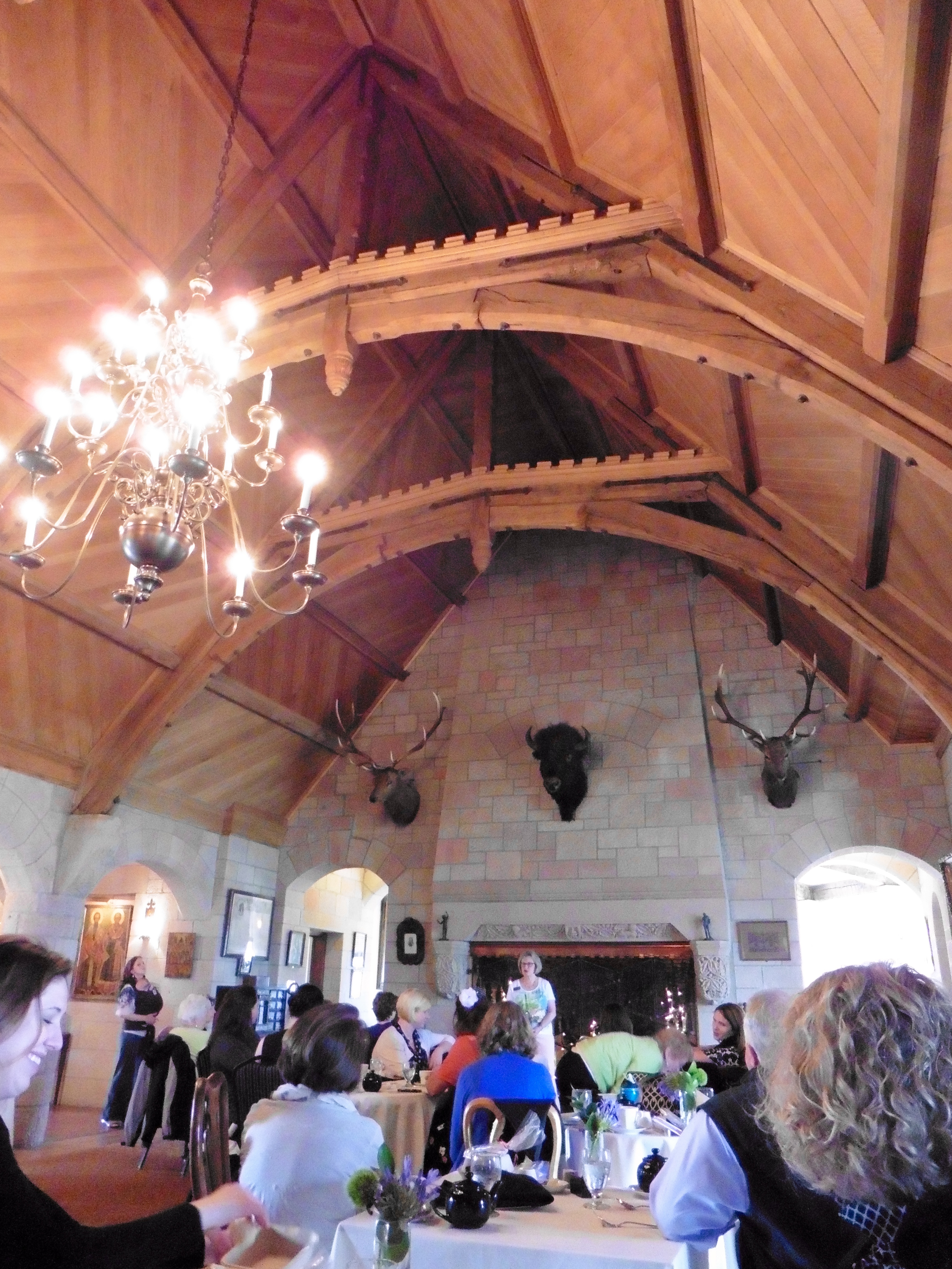 First we enter the Great Hall with soaring wooden arches and cut stone walls.