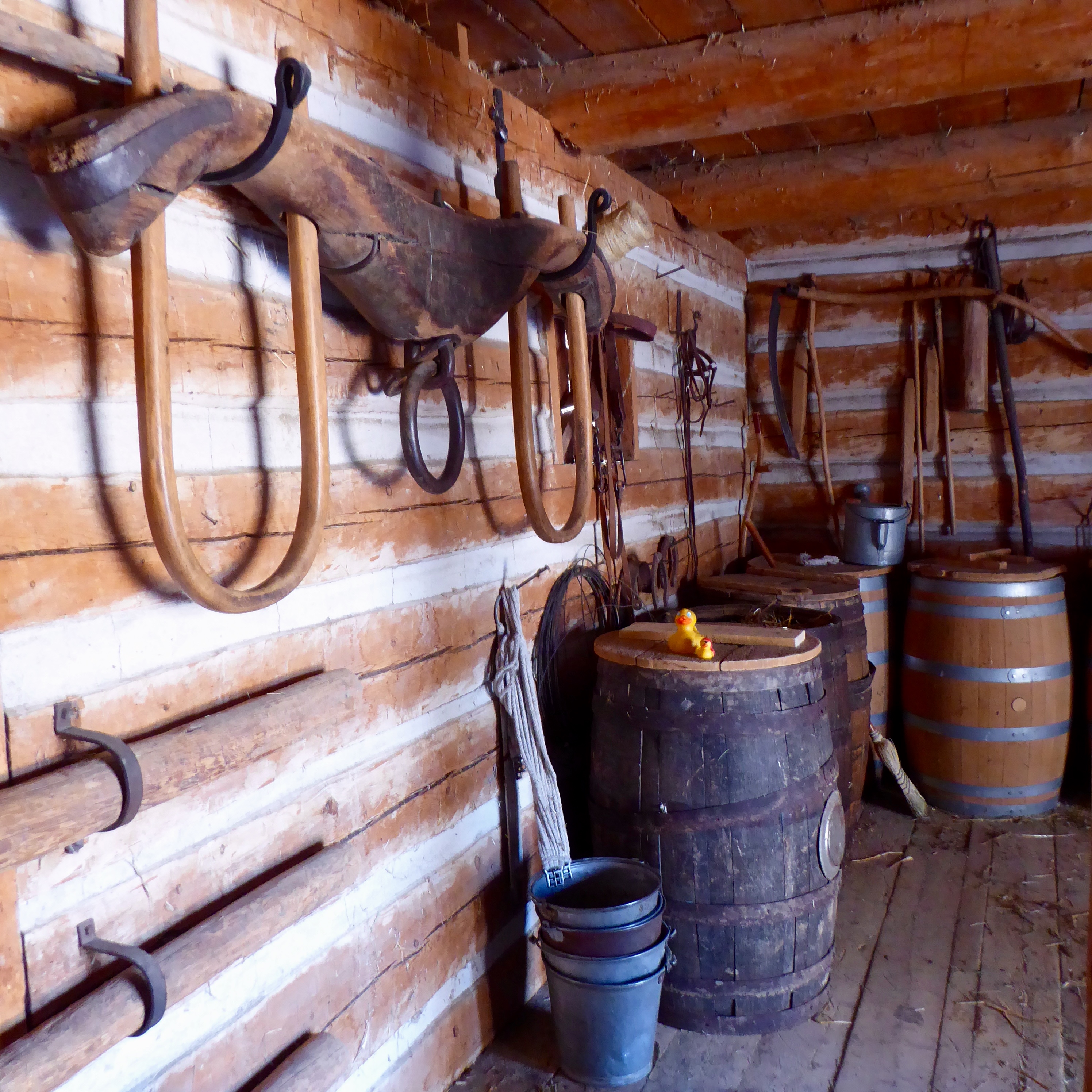 This tool shed holds many tools that were used by hand. There were no electric tools in the 1860s. More animals.