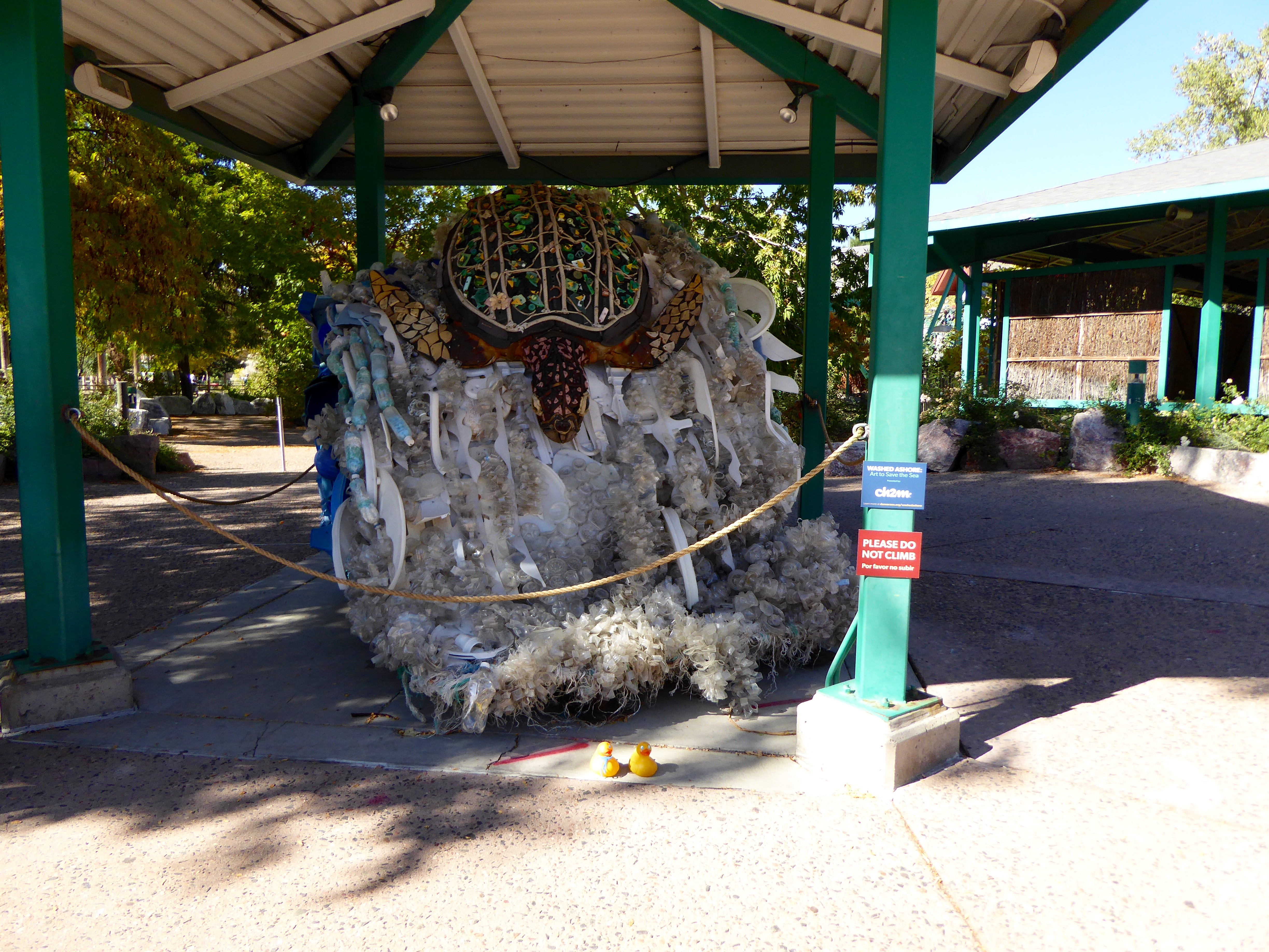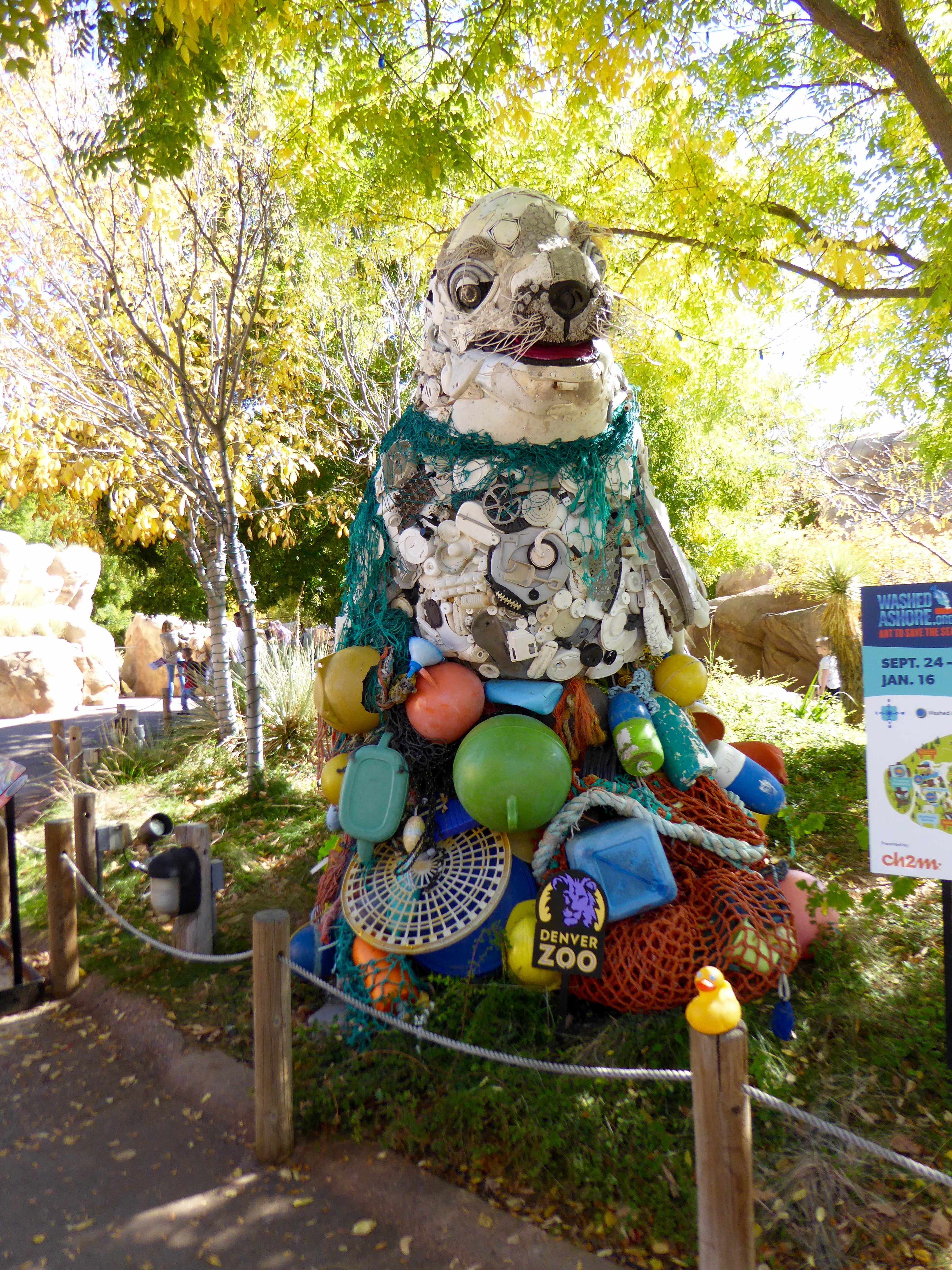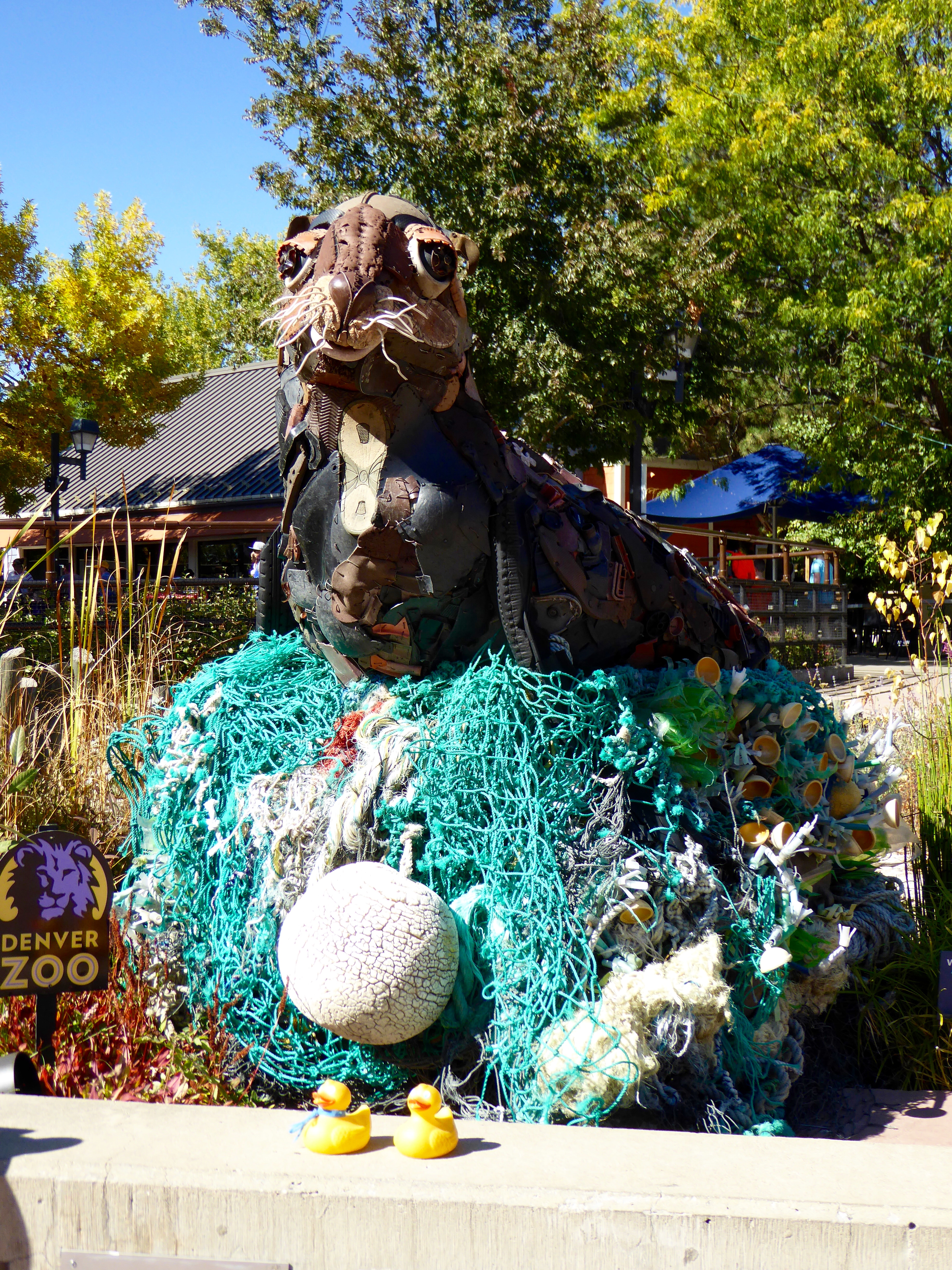 I, Zeb the Duck, and Soapy Smith Duck, visited the Denver Zoo. Washed Ashore, a non profit organization, has displayed 15 works of art at our zoo. These works of art are all completely made from garbage collected from beaches. Washed Ashore’s mission is the use the arts to educate a global audience about plastic pollution in oceans and waterways and to spark positive changes in consumer habits. This is Lidia The Seal.