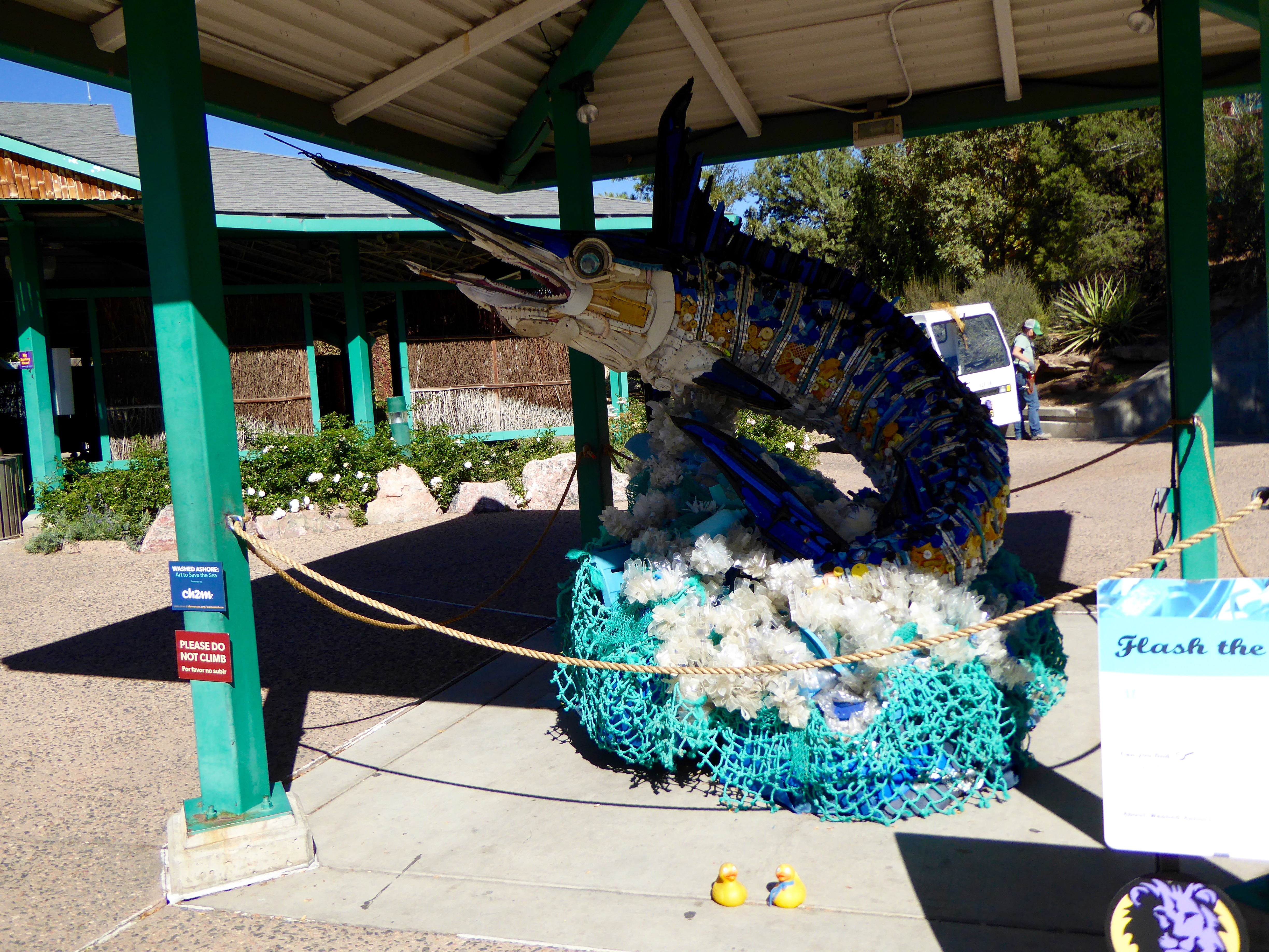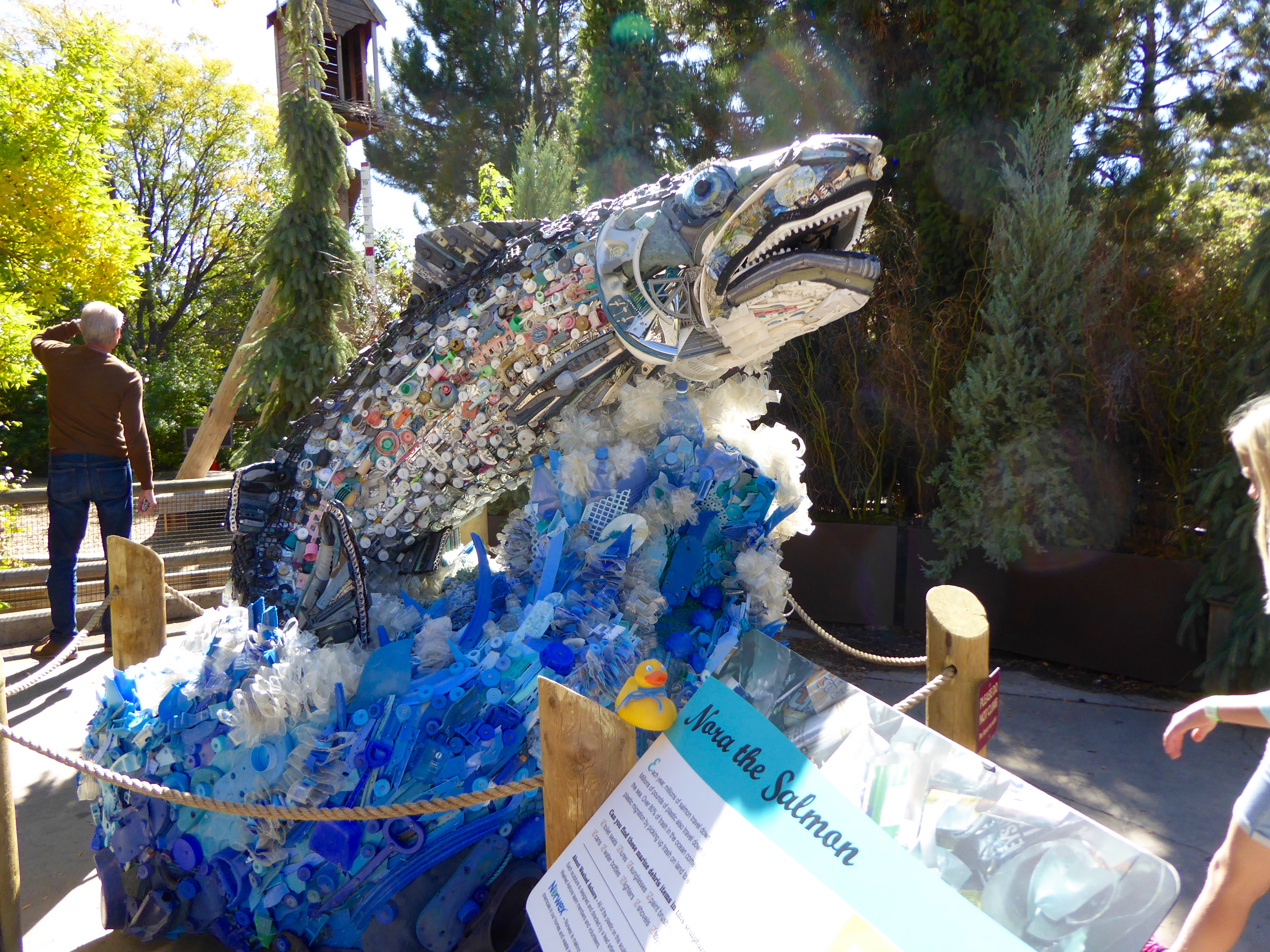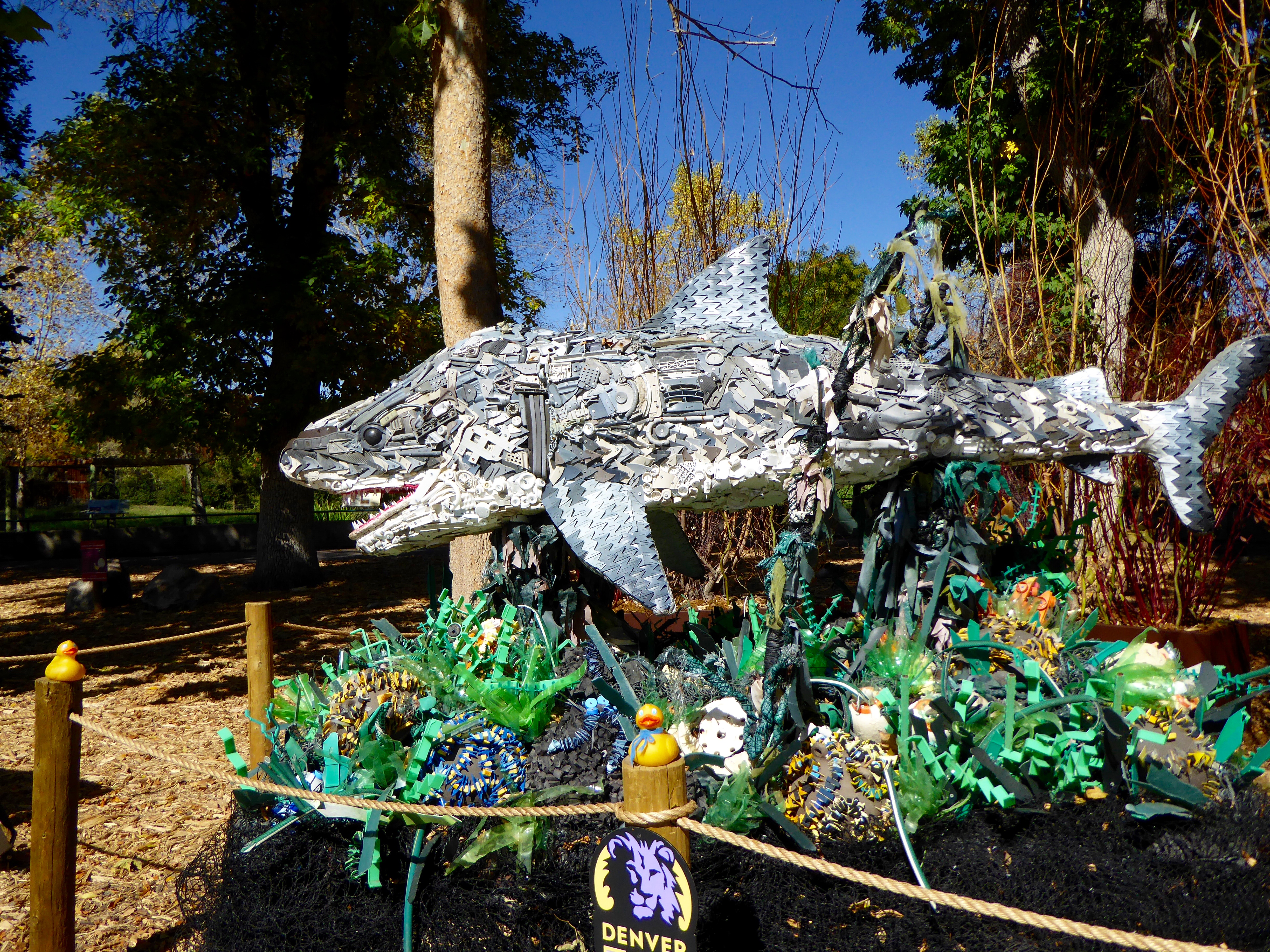 I, Zeb the Duck, and Soapy Smith Duck, visited the Denver Zoo. Washed Ashore, a non profit organization, has displayed 15 works of art at our zoo. These works of art are all completely made from garbage collected from beaches. Washed Ashore’s mission is the use the arts to educate a global audience about plastic pollution in oceans and waterways and to spark positive changes in consumer habits. This is Lidia The Seal.
