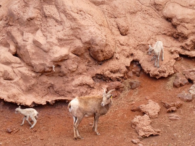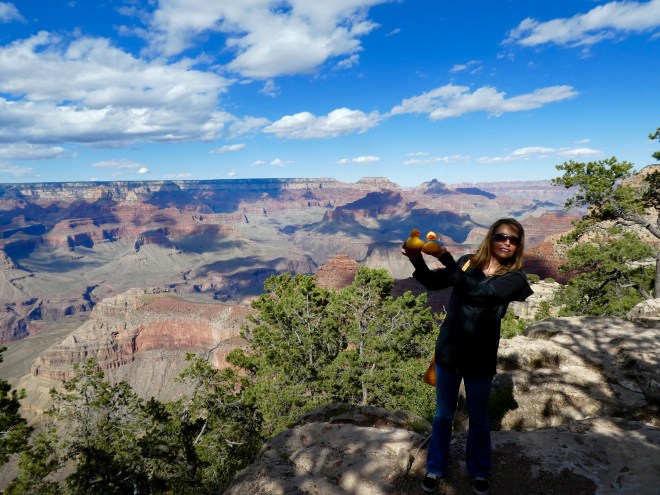 Many stores sell burro food, so tourists and human residents do feed the burros. But be careful. We were told if there are more than 1 or 2 male wild burros, they may fight and you may get bitten or kicked. We were careful. Soapy’s mom is feeding one burro.