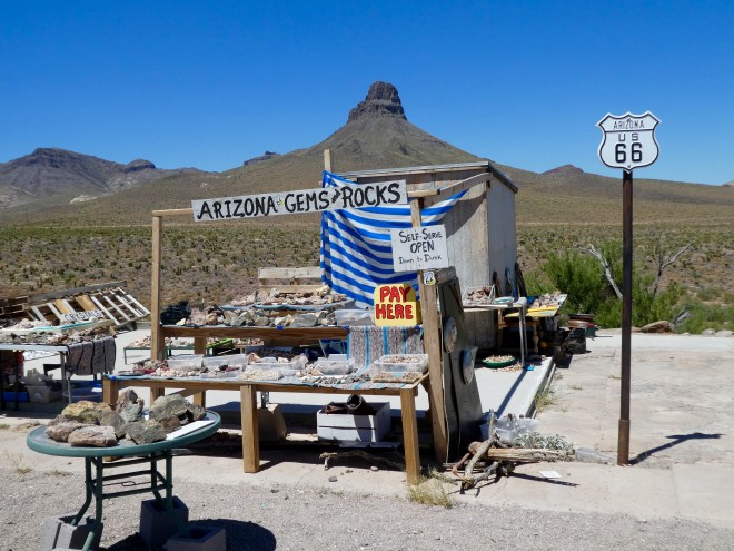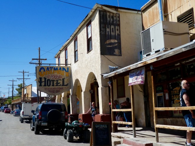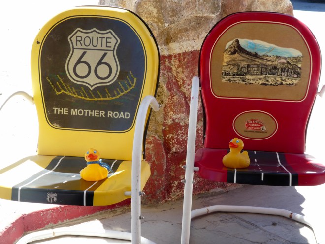 Route 66 led us from Cool Springs, Arizona into Oatman, Arizona. Oatman was a gold mining town, but now this is a great tourist town–for humans, ducks, and wild burros.