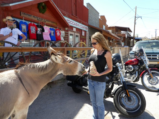 As you can see, this is a popular destination for motorcycle riders to stop also. Is he watching the burro, or Soapy’s mom? The names of the stores are different than the stores in Denver.