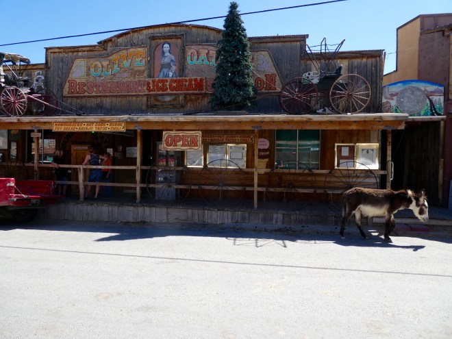 It seems that the wild burros also like the theater, or the food on the porch. We learned a lot while in Oatman.