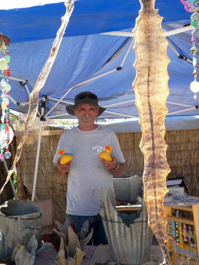 Rattlesnake skins! He was very nice and suggested that we go the Oatman Hotel for lunch. After a little more looking, we headed there for lunch.