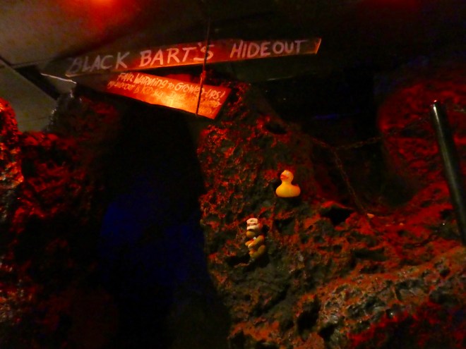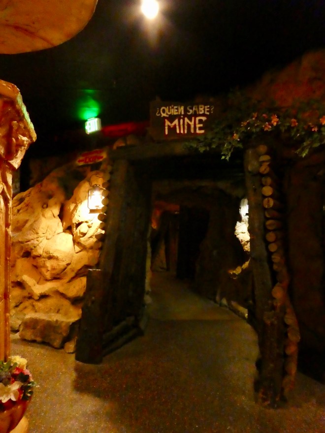 Entering we discover another dining room resembling the inside of a mine. The lights by each table offer plenty of light.