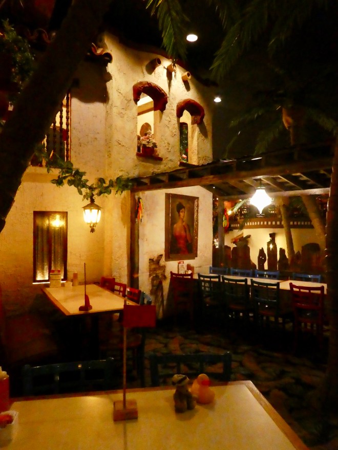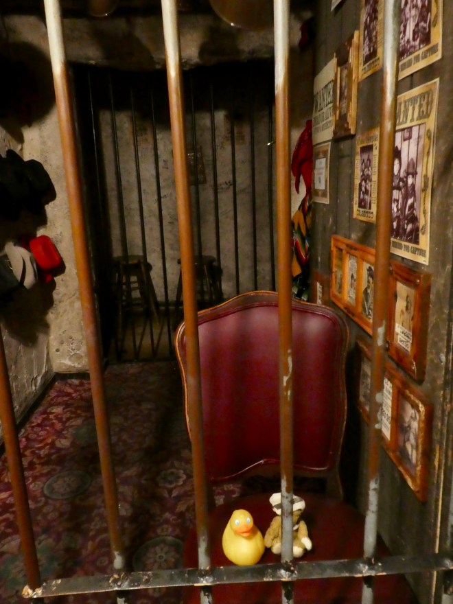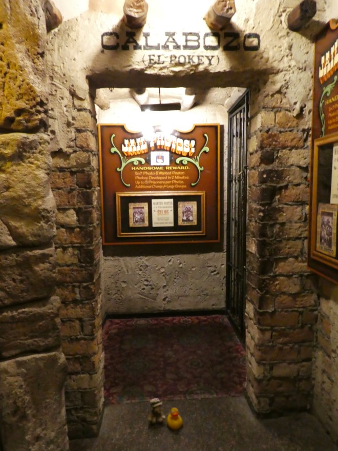 Plenty of seating for diners here. Each area has been decorated differently. And very carefully to give a varied experience. You could return and eat in a different room and have a different experience. You can order the deluxe, all you can eat, dinner as we did, order other Mexican platters, try a salad, chile rellenos or fajitas. American chicken fried steak or fried chicken breast is available, and also a kids menu. We visited the dining room decorated as a cavern. The stalagmites and stalactites were very realistic. Here is a jail.
