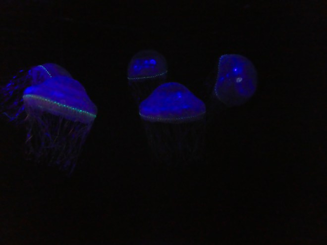 Ponyfish are called Sapsap in the Philippines, where there are caught in huge numbers for soups and stews. Guess they don’t glow when cooked. These jelly fish, if poked or jostled, light up their rim.