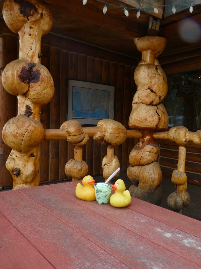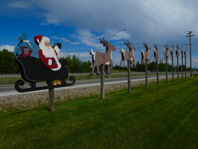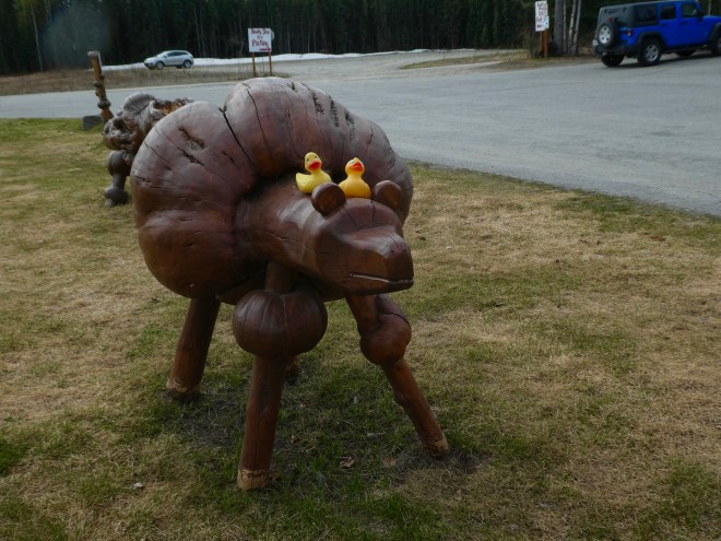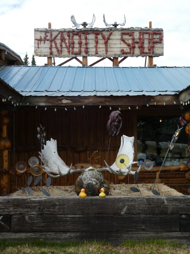 We bought this blue Jeep from Eider’s dad’s estate near Fairbanks. Now we are driving it home to Colorado. Yesterday Eider and I took Soapy and his mom to Santa’s House and then to the Knotty Shop. This morning our first stop is the Visitor’s Center in Delta Junction.