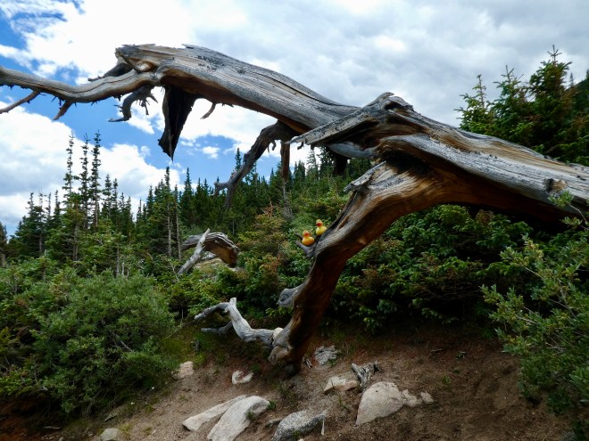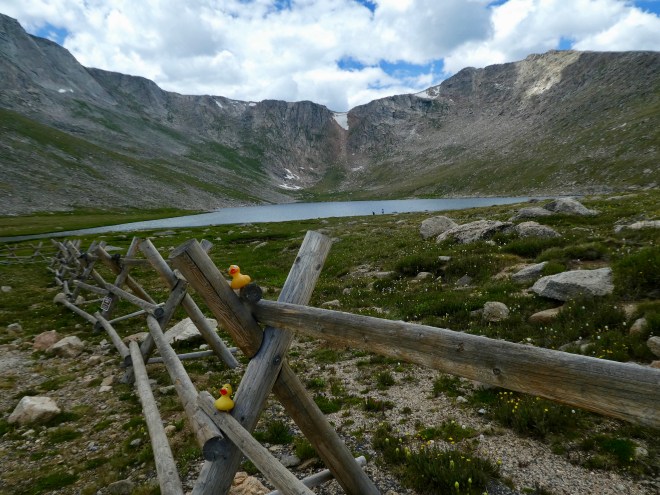 Let’s drive on the highest paved highway in North America.   Colorado Traveling Ducks are going to the top of Mt. Evans.  And we will not be more than 2 hours away from home near Denver, Colorado.   First we stop to admire Echo Lake.