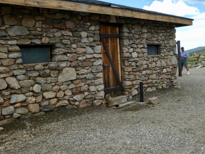 This yellow bellied marmot wants to go inside this building?  We saw a park ranger and he said he opened the door earlier and the marmot went inside.   When he came out, the ranger closed the door.   As he was coming out, he seemed to look right at me.