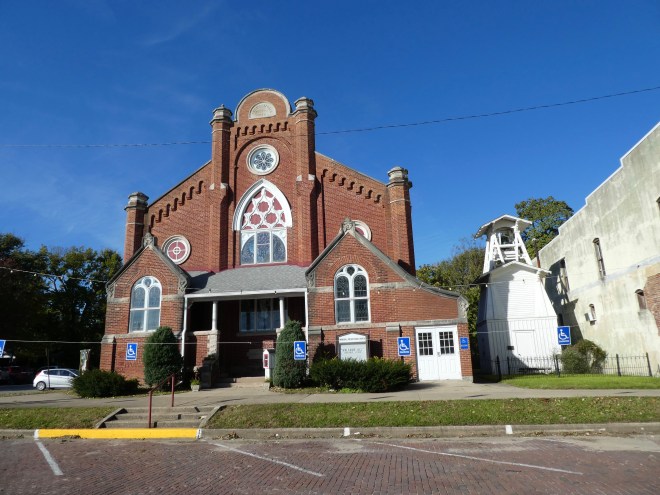 Autumn decorations abound in Rockville. Near the courthouse, we liked the Memorial Presbyterian Church.