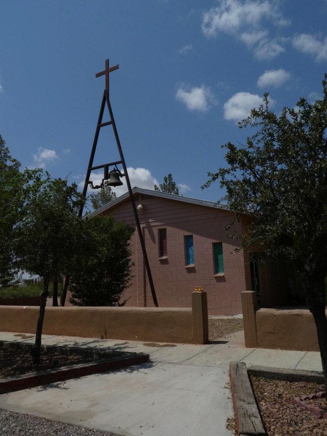 During the Pancho Villa attack, the safe was shot. The bullet hole is marked. What a great museum. Columbus had rich mineral deposits. Miners found silver, copper, lead and zinc here. There is not much mining in Columbus now. We like this small church.