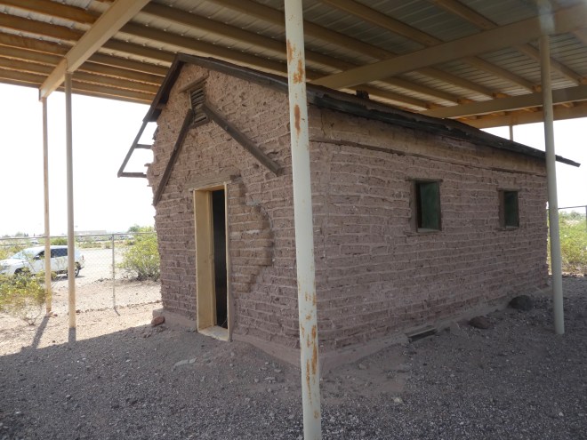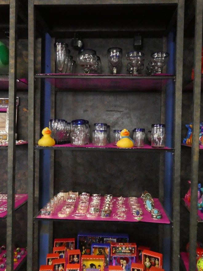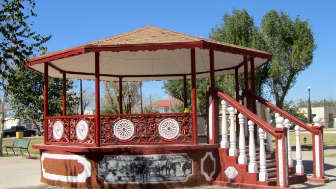 And there is so much white sand there! If you start digging at the shallow part, you will still be digging sand for more than 30 feet. A sign said there is enough sand to fill 45 million boxcars. That makes a train long enough to circle the earth, at the equator, 25 times. That is a lot of sand! White Sands National Monument is near Alamogordo, in southern New Mexico and is surrounded by White Sands Missile Range. Sometimes this monument is closed during missile range tests. White Sands Missile Range is also an interesting place. The first atomic bomb test was here, at Trinity Site, July 16, 1945. There is also a fascinating free museum at White Sands Missile Range. But, today we are talking about a lot of white sand. After the Visitor’s Center, we walked to the gift shop. Isn’t this a pretty court yard between the Visitor’s Center and Gift Shop?