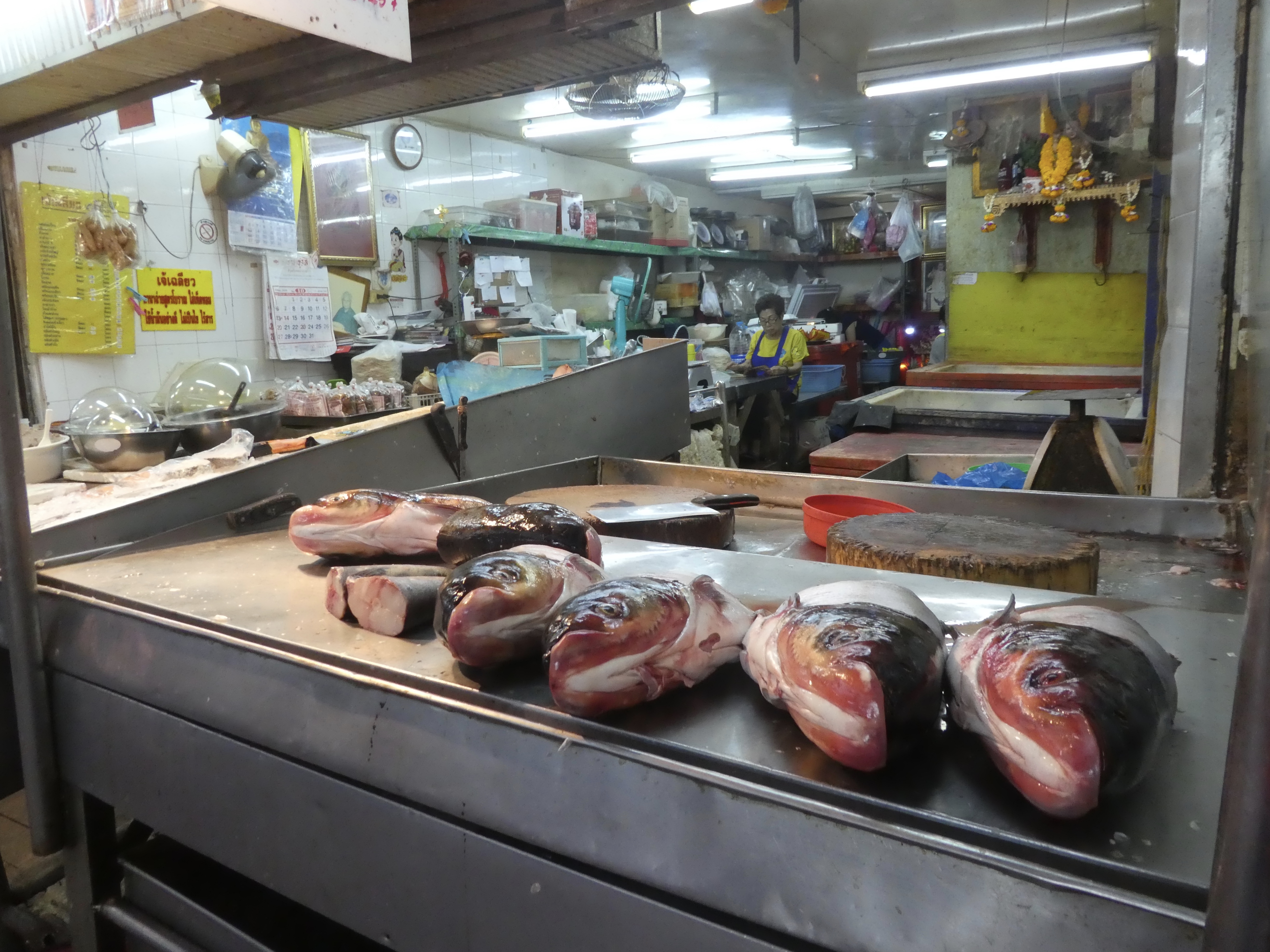 Mom, are these just the heads of fish? I believe so. Now we are walking through the flower market.