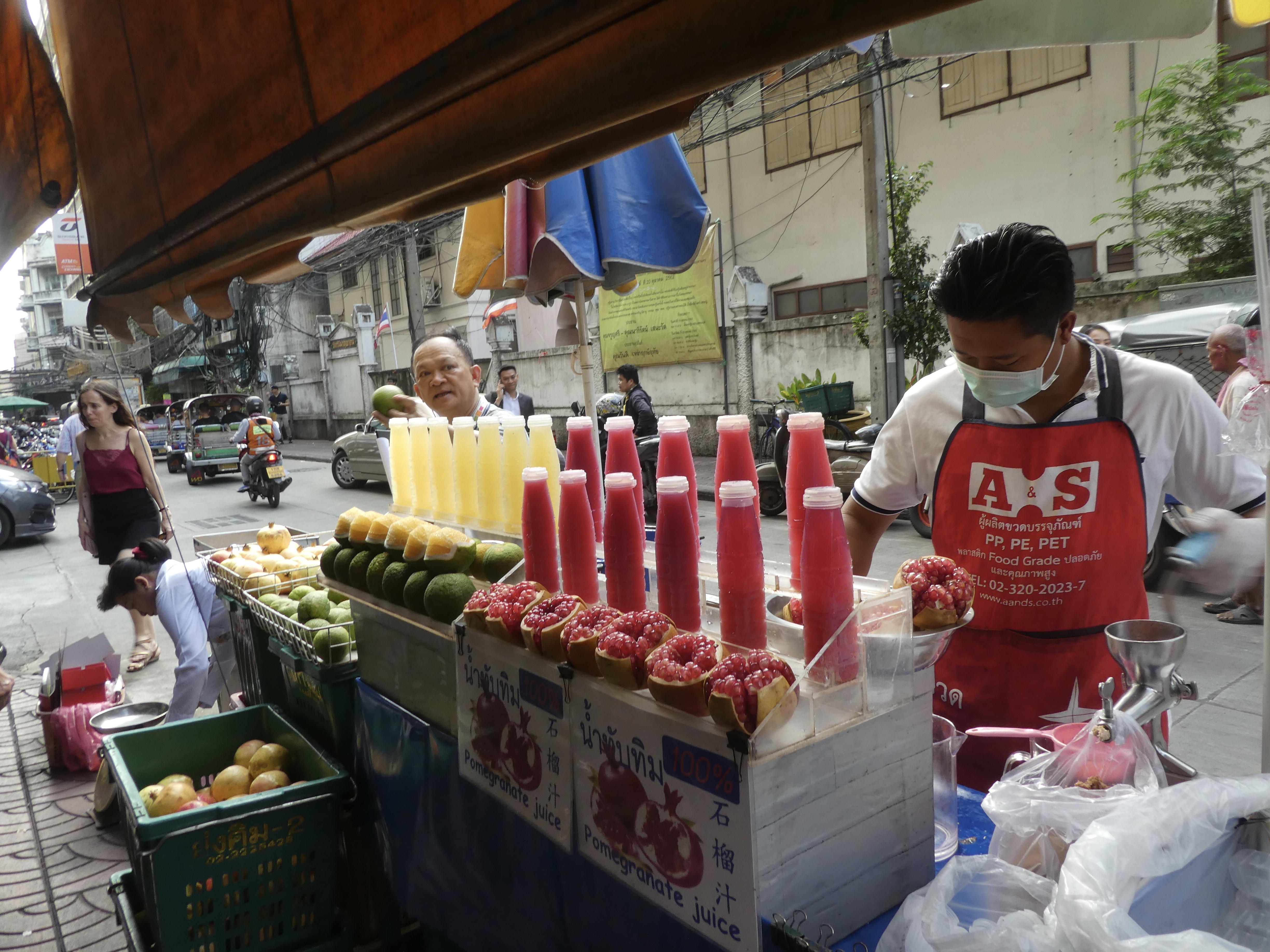 This is great. It is hot in Bangkok, so selling fruit and juice is great for locals and tourists alike.