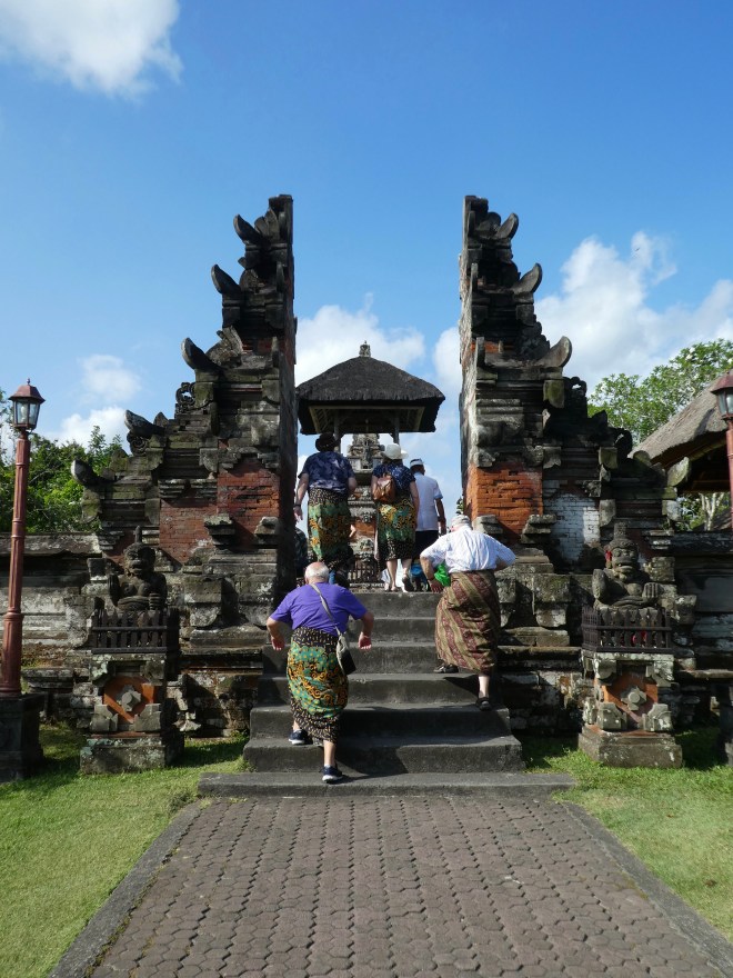 A few of our group, including our guide, were wearing shorts. The temple provides complimentary sarongs for men and women so we could all enter. Properly attired, we climb the stairs and pass through this gate.