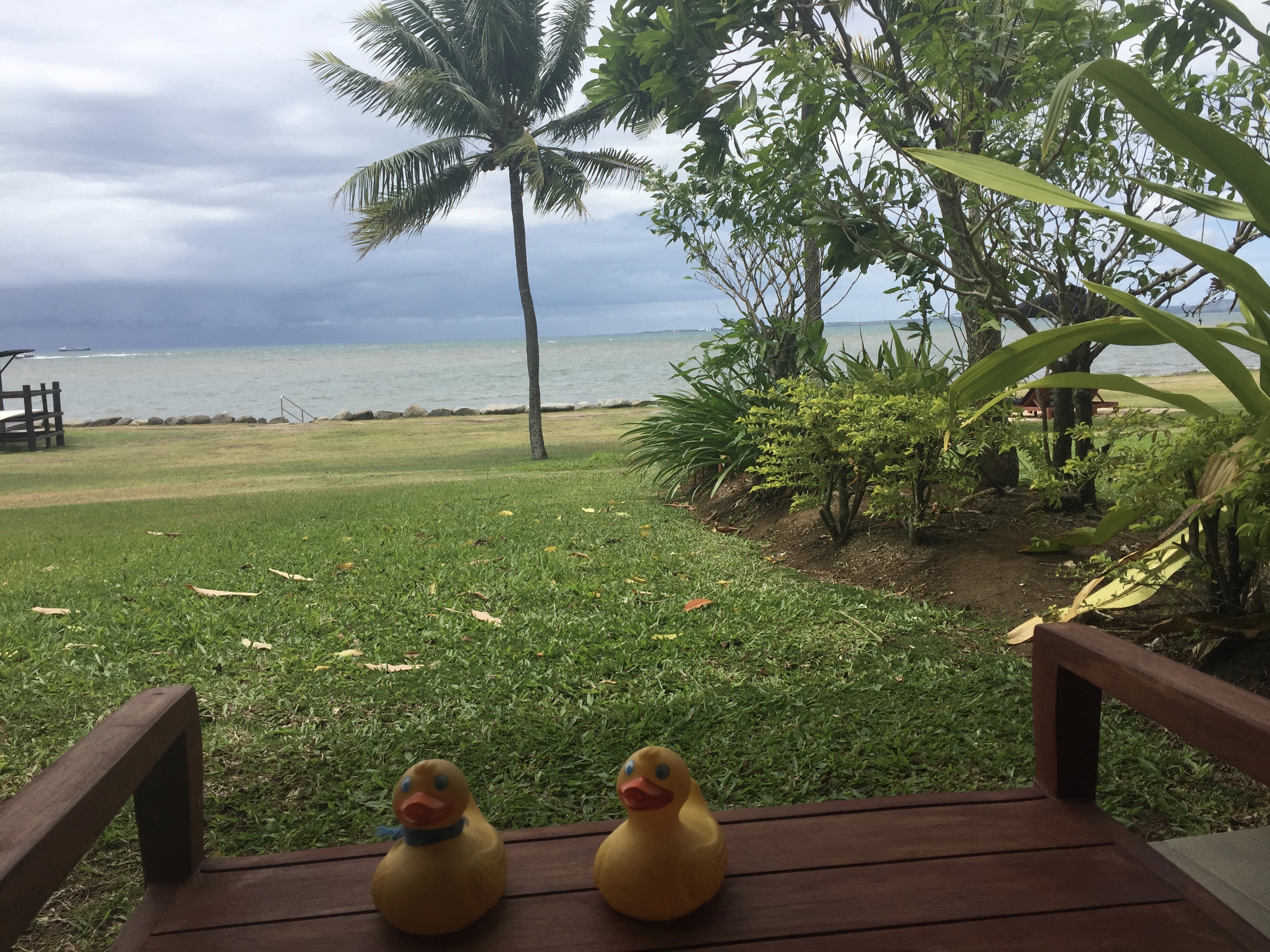 Soapy Smith Duck and I, Zeb the Duck, are enjoying the breeze from the Pacific Ocean while sitting on our patio. While in Fiji, we plan to spend much of our time at the beach.