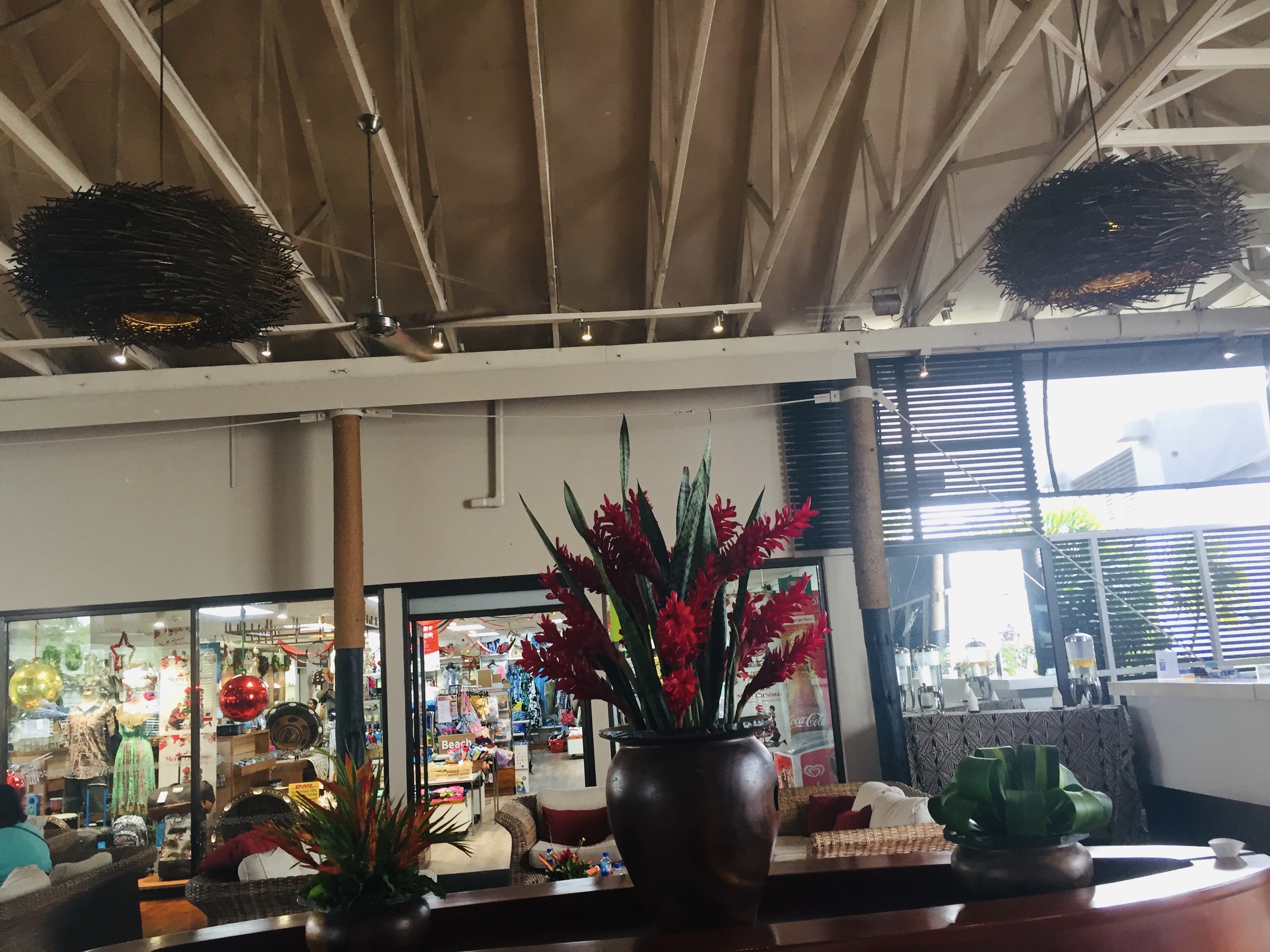 We like this lobby. Look at those flowers. Those ceiling fans are nice and different than ours at home. And the store is Jack’s. We will soon learn that Jack’s is a main store in Fiji. Some of everything and great souvenirs. We have our keys and the golf carts are ready to drive us to our room.