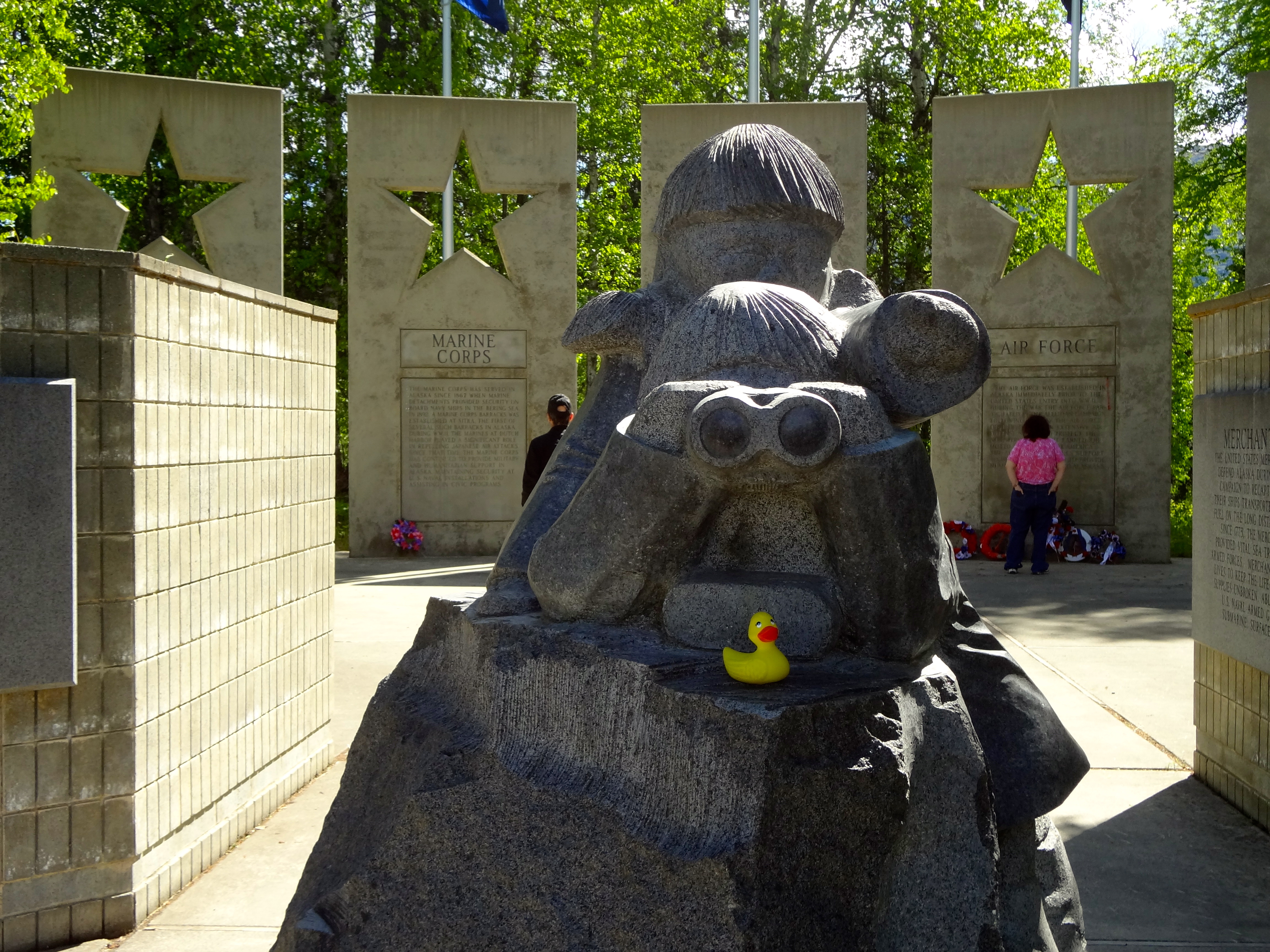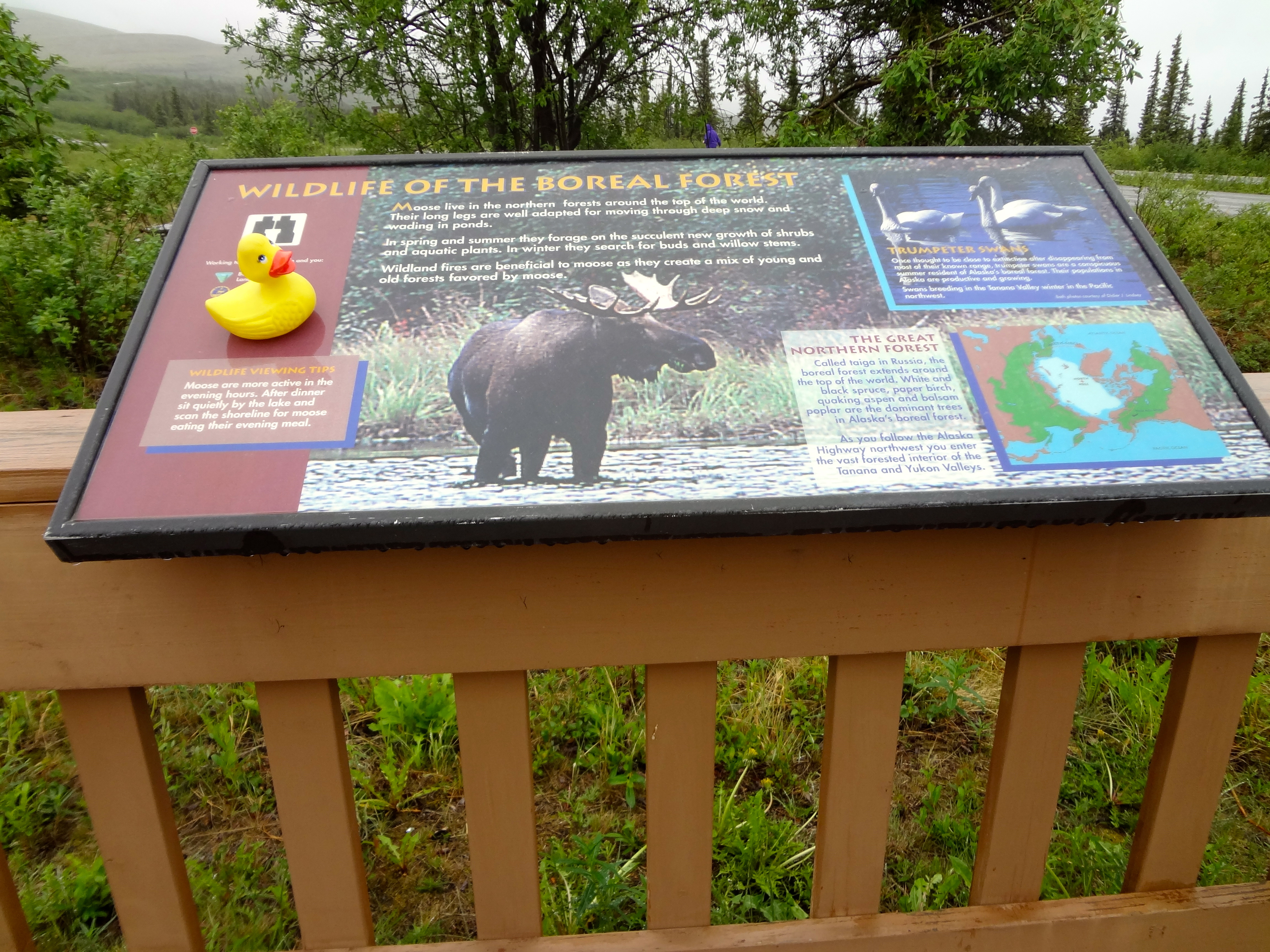 Yes, you read that correctly. Mom said we are flying to North Pole, Alaska. Not THE North Pole, but the suburb of Fairbanks, named North Pole. I, Zeb the Duck, am going to Alaska. Mom, isn’t this winter and isn’t it cold in the winter? Well, we will experience North Pole, Alaska in February. Driving to Denver International Airport that morning, Soapy Smith Duck’s mom drove us through snow, ice, and subfreezing temperatures. Thanks for the safe ride! After boarding our Alaska Airlines flight, we taxied to the de-icing area.
