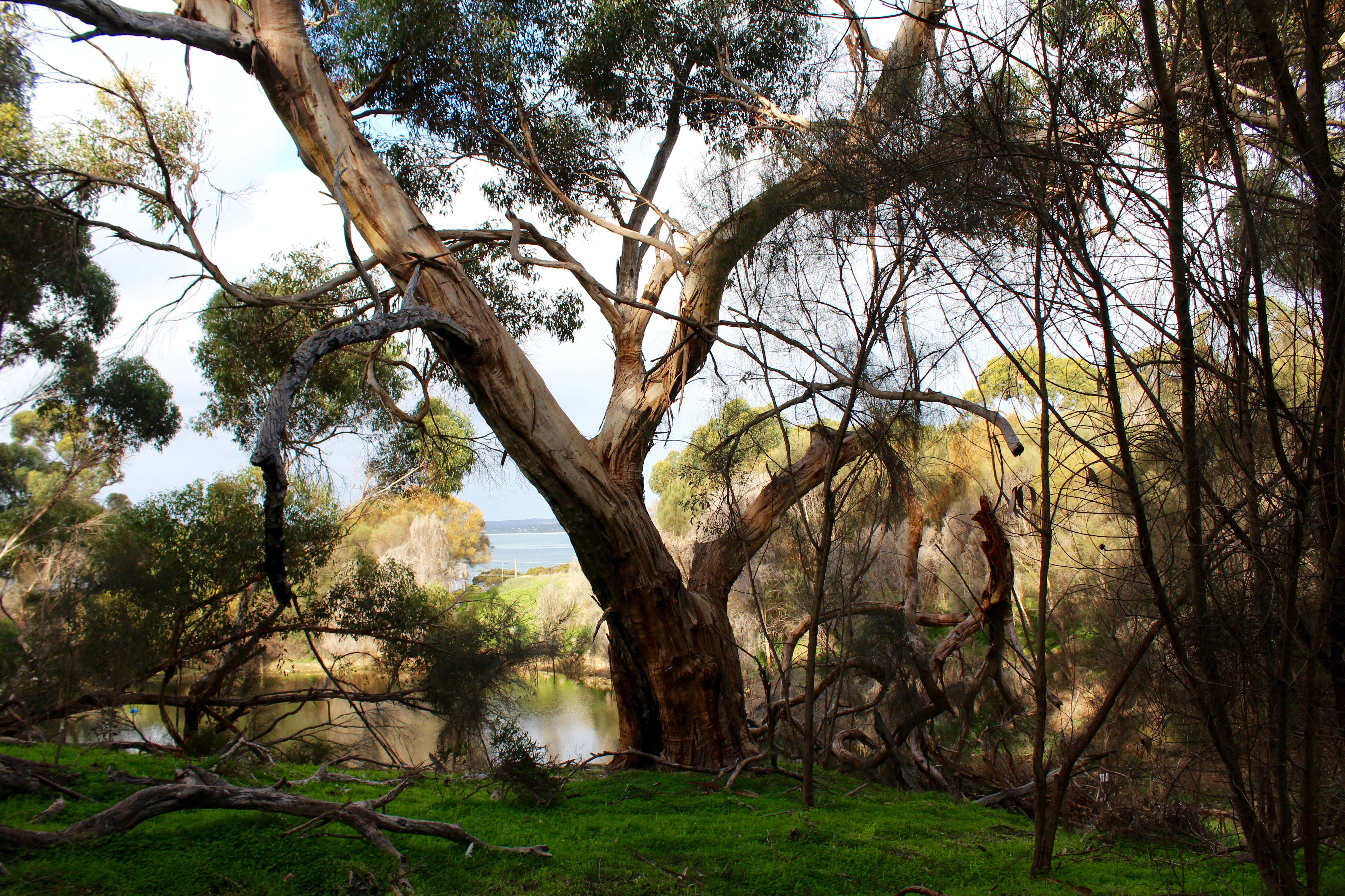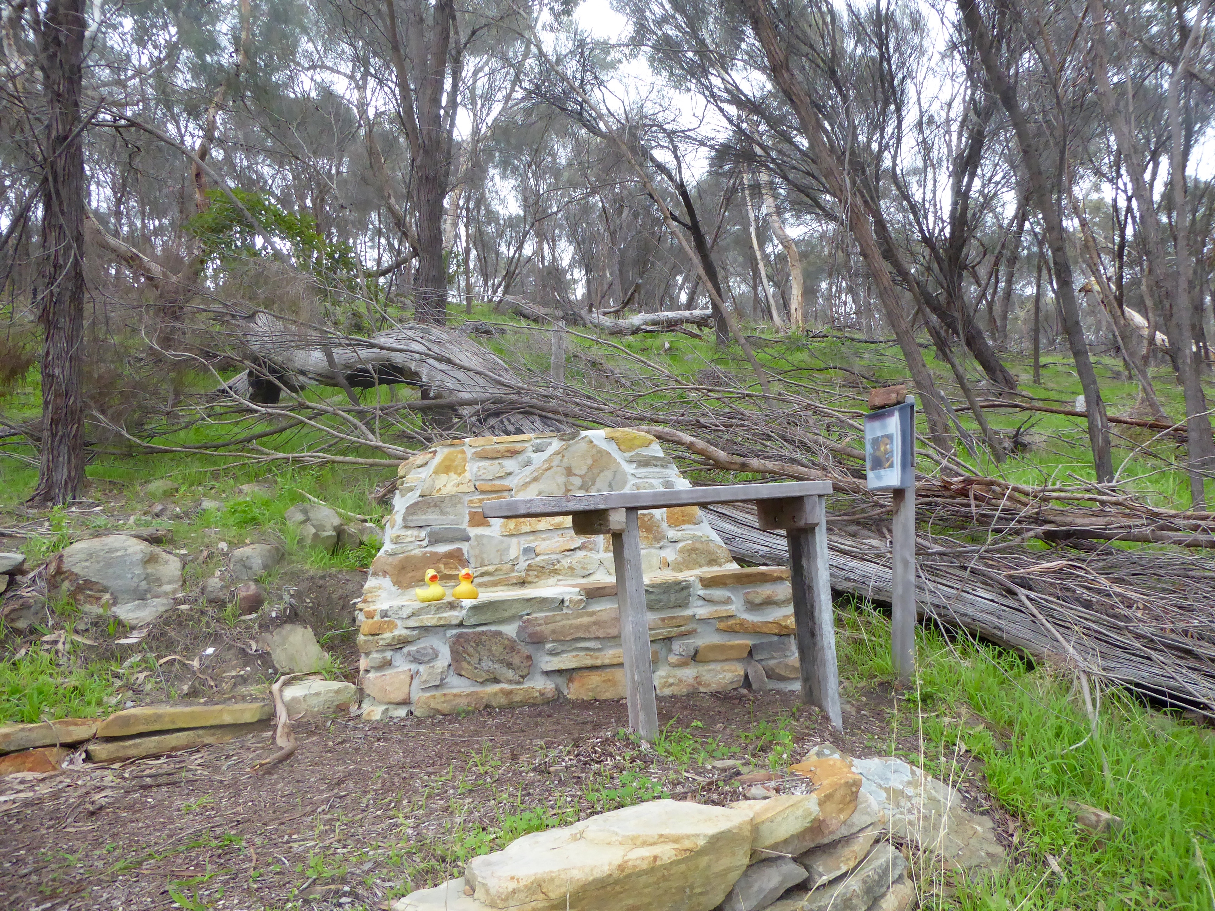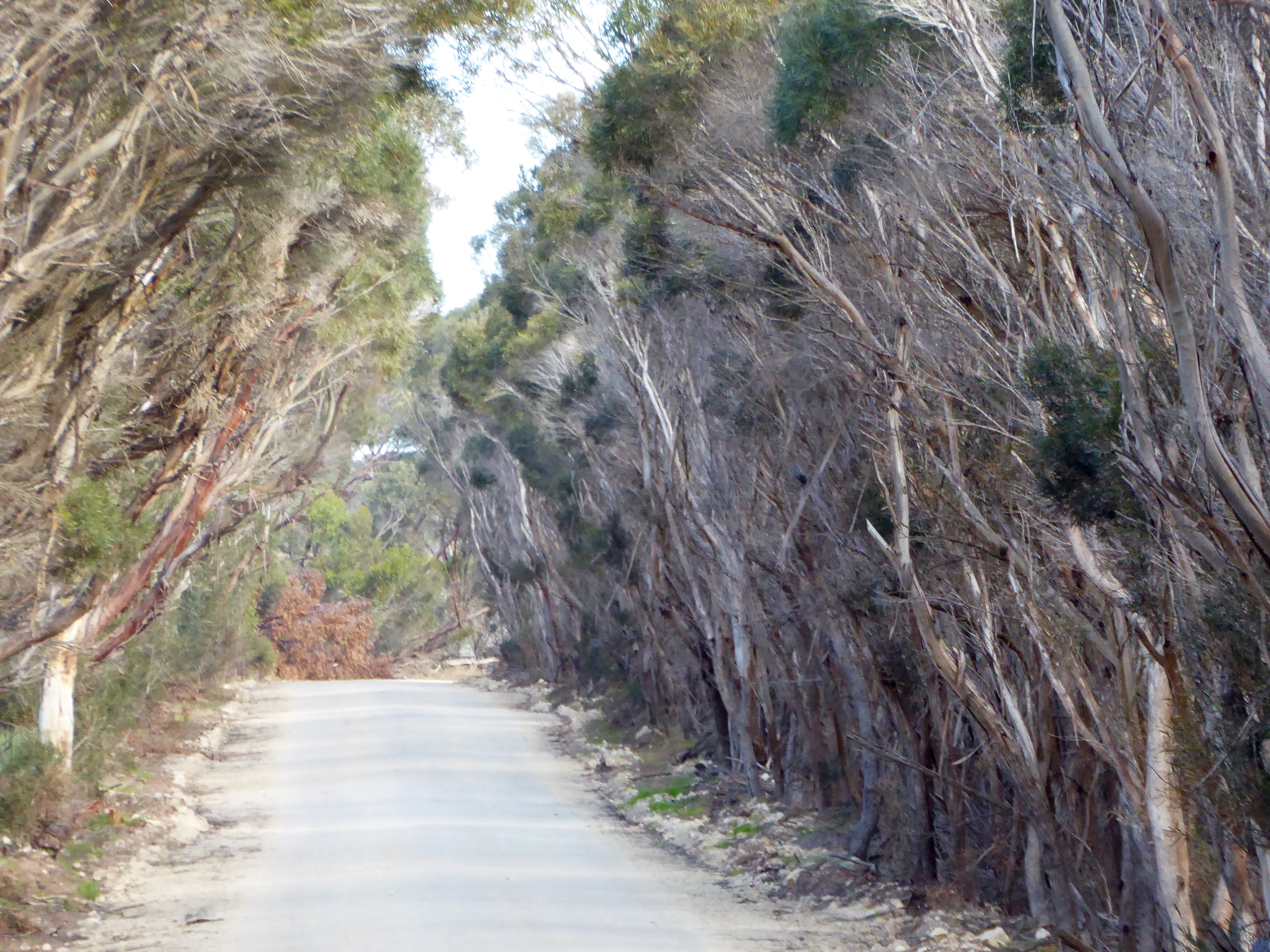 You will notice that our resort is not in the cold, windy part of the island. Flinders Chase National Park, that we showed you the last two times, was beautiful, but the wind was very strong. Along this path, we enjoyed resting on this bench.