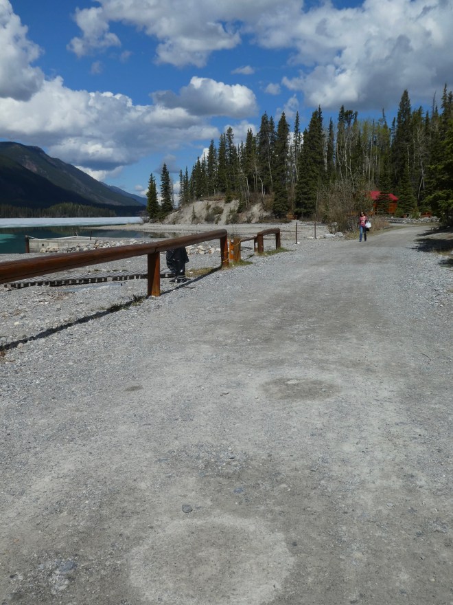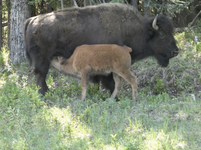 We always see buffalo along this part of the road. I love them. They are so big and every time we pass through here we see baby buffalo. Of course, we have only been here in May and June. Here is beautiful Muncho Lake.
