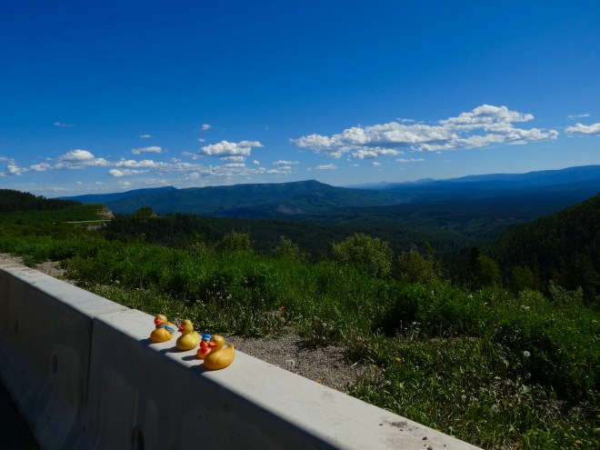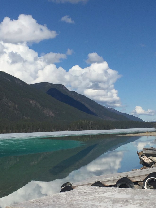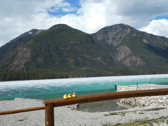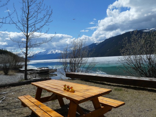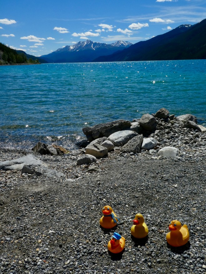 The colors are so vivid. Just beautiful. It is a sunny day so mom has us, ducks and Chloe, by the lake. Soapy’s mom is getting food from the restaurant and we will have a picnic by Muncho Lake.
