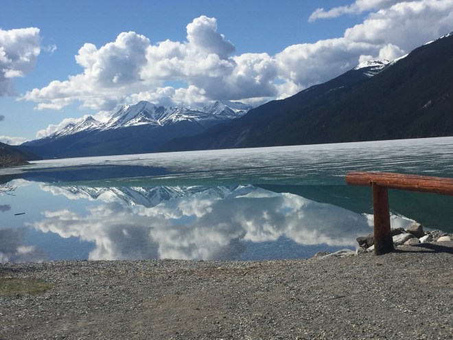 We just love the reflection of clouds and mountain in the lake.