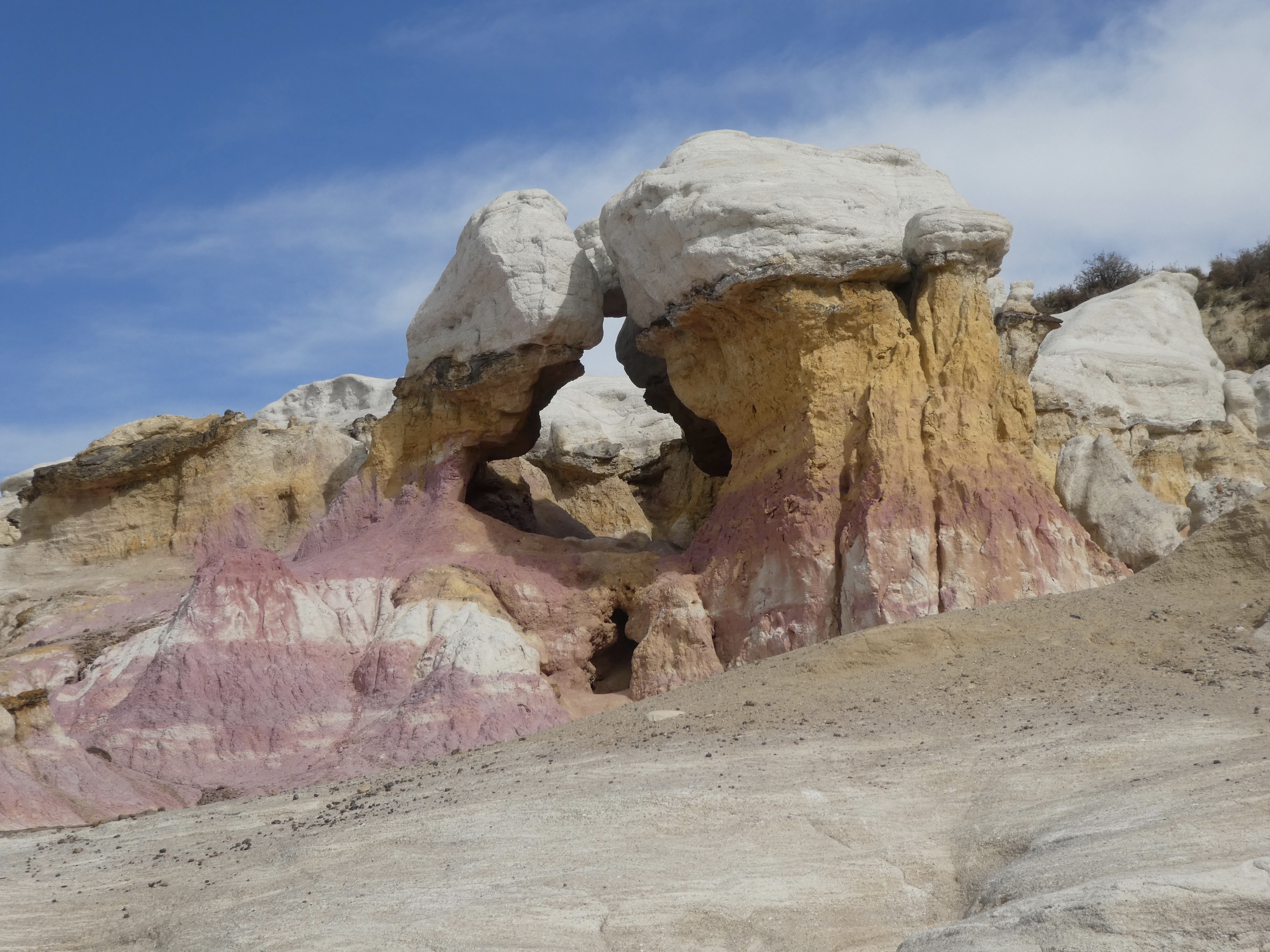 The clay here is mostly white, with some gold. Scientists believe this area has been inhabitated for 9,000 years. Scientists also believe these geological features were being formed about 55 million years. Walking further, we loved this formation, or hoodoo.