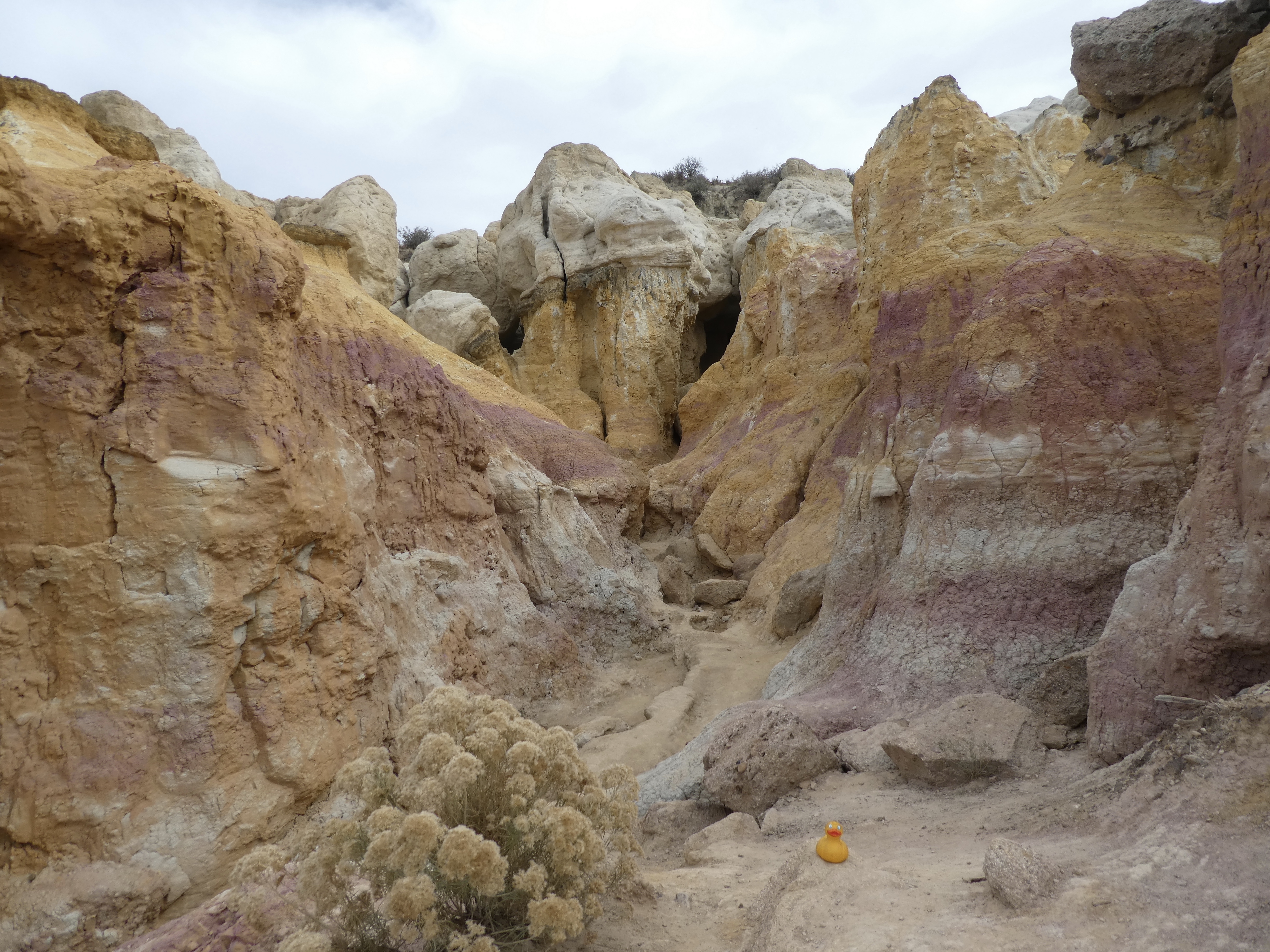 These huge wind turbines are a constant reminder of how the weather can change here. Visit Calhan and the Paint Mines on a nice day and you will enjoy your time here. I, Zeb the Duck, came here last fall, with mom and her human friend. We were not out exploring during the stay at home orders. This is a great place to visit in spring and fall. We hope you visit on a sunny, cool day. Exploring, hiking and just looking in wonder at the colors is fun for us. Perhaps you would enjoy it as much as we do.