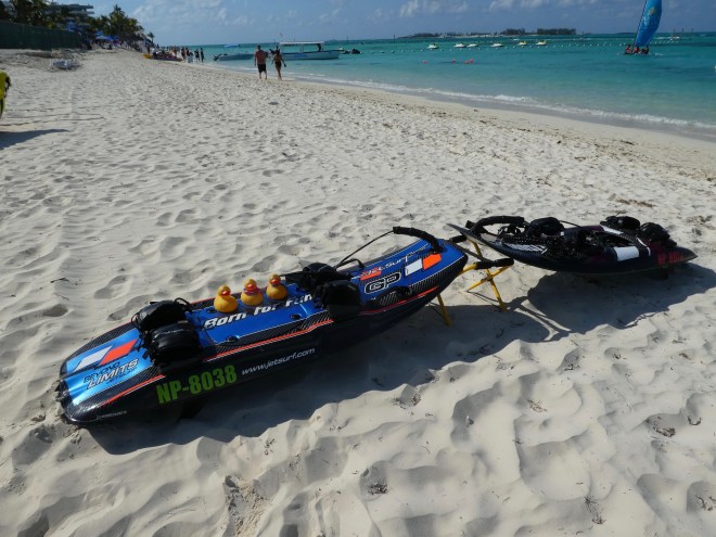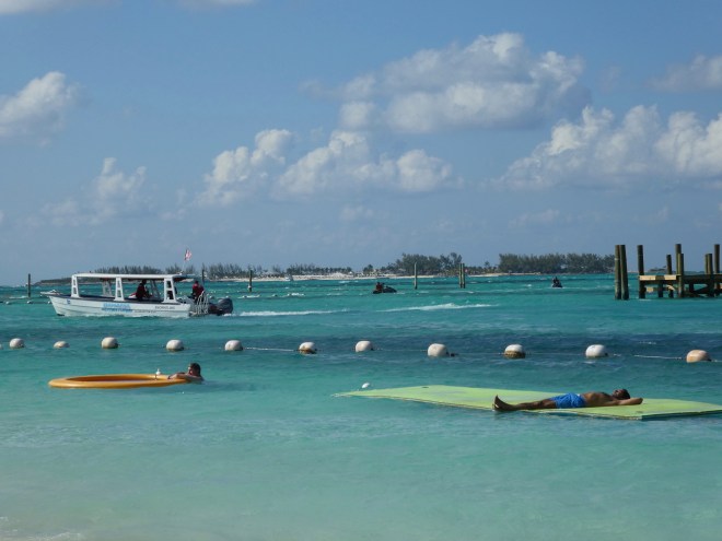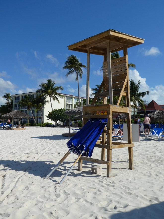 Here we are on the lifeguard stand. As you can see here, the beach in Nassau is beautiful and quite wide.